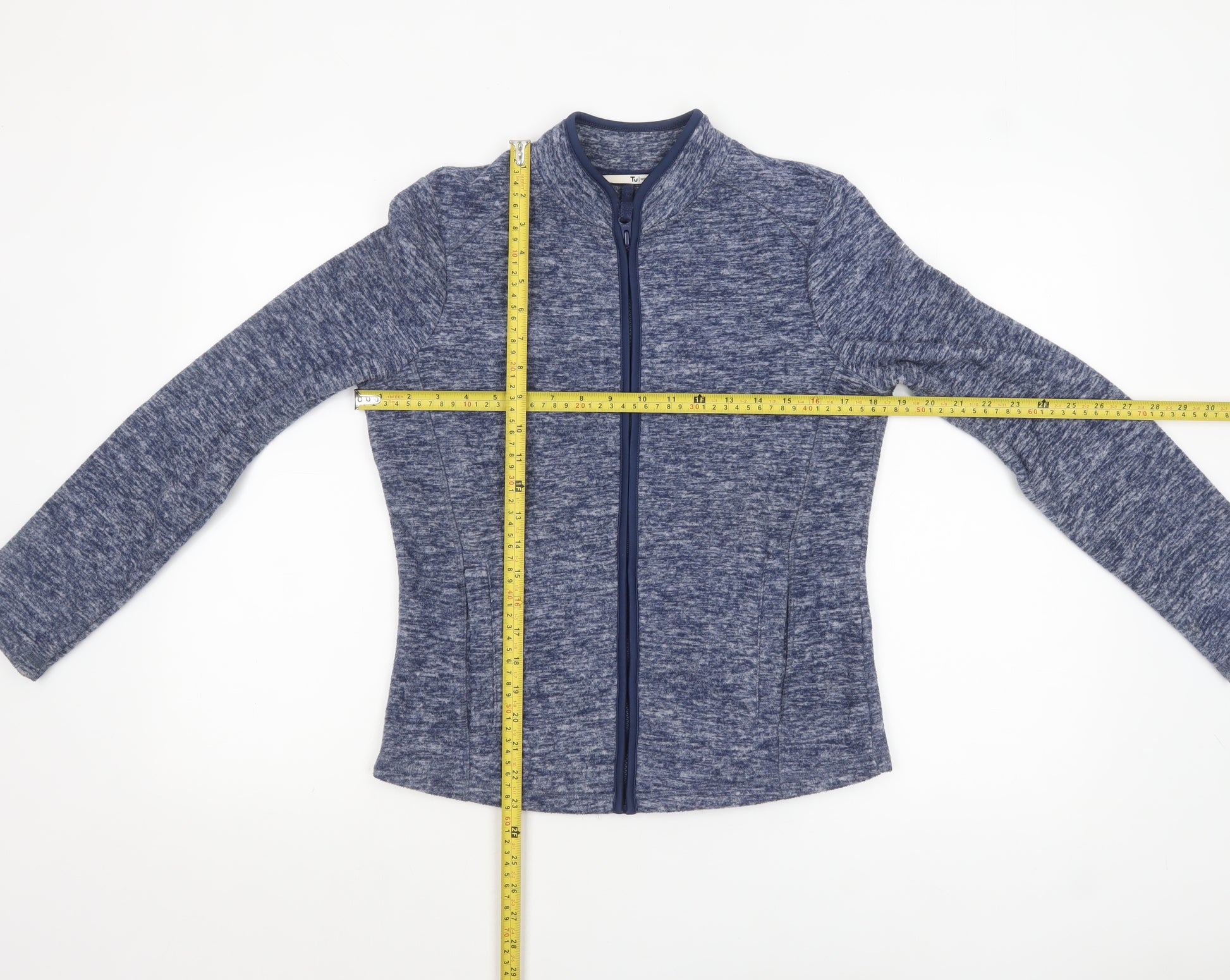 This Tu women’s blue full zip lightweight jacket is a great casual essential, perfect for layering in spring or autumn. Crafted from soft jersey fabric in a heathered blue tone, it provides both comfort and style. The simple yet flattering design includes a full front zip fastening, side pockets, and long sleeves for everyday practicality. Its lightweight and breathable polyester construction ensures an easy fit and good movement, making it ideal for running errands, walks, or travel. The jacket’s versatile short length pairs effortlessly with jeans, leggings, or joggers, adding a relaxed finish to any casual look. Designed by Tu, a trusted high-street brand known for comfortable and affordable fashion, this piece offers a blend of quality and wearability. The smooth zip closure allows for quick, fuss-free wear while maintaining a neat appearance. With a regular fit silhouette, this jacket suits various body shapes and can easily be worn over a t-shirt, hoodie, or sports top depending on the weather. Machine washable and easy to maintain, it’s a wardrobe staple for everyday use. Whether heading out for a casual meet-up or layering during outdoor activities, this Tu blue jacket provides reliable comfort with timeless simplicity. In excellent condition with only minimal signs of light use, it’s ready to wear and enjoy for many seasons to come.