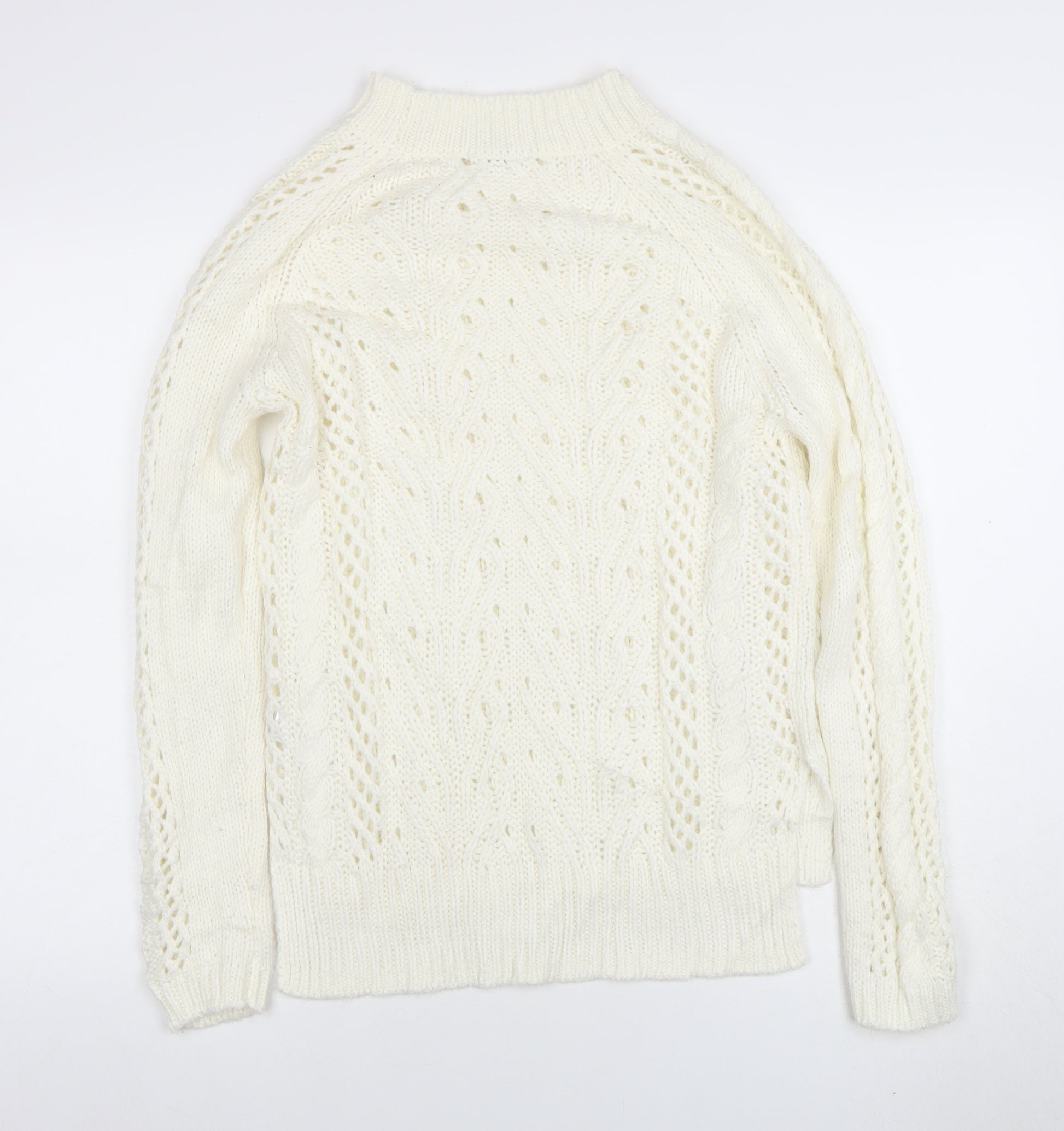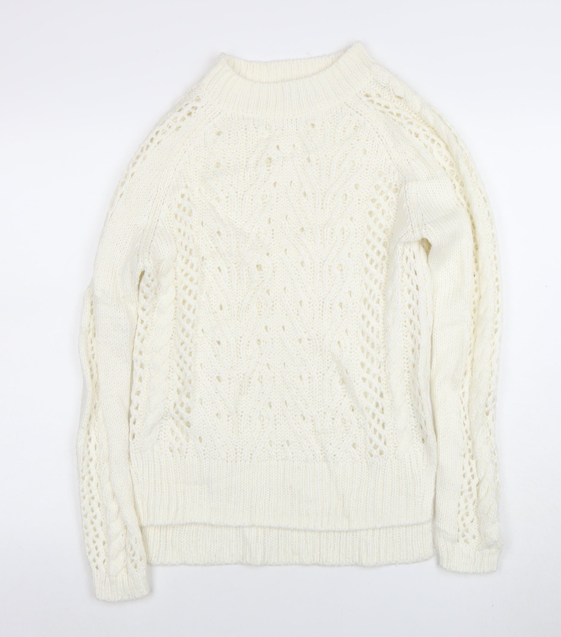Women Ivory Cable-Knit Jumper Size 8 Wool Blend Winter Pullover