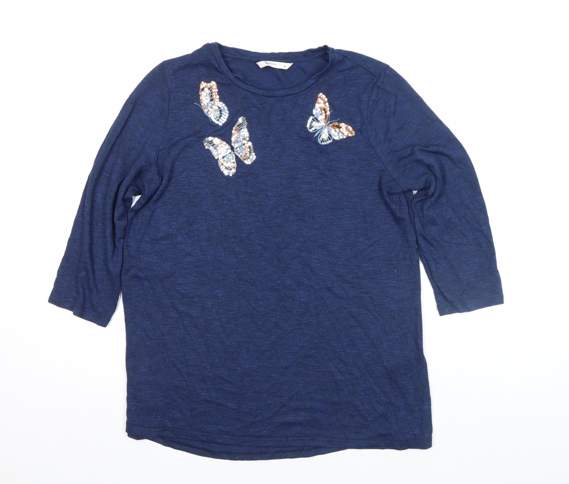 Tu Women’s Blue Sequin Butterfly 3/4 Sleeve Top Size 10