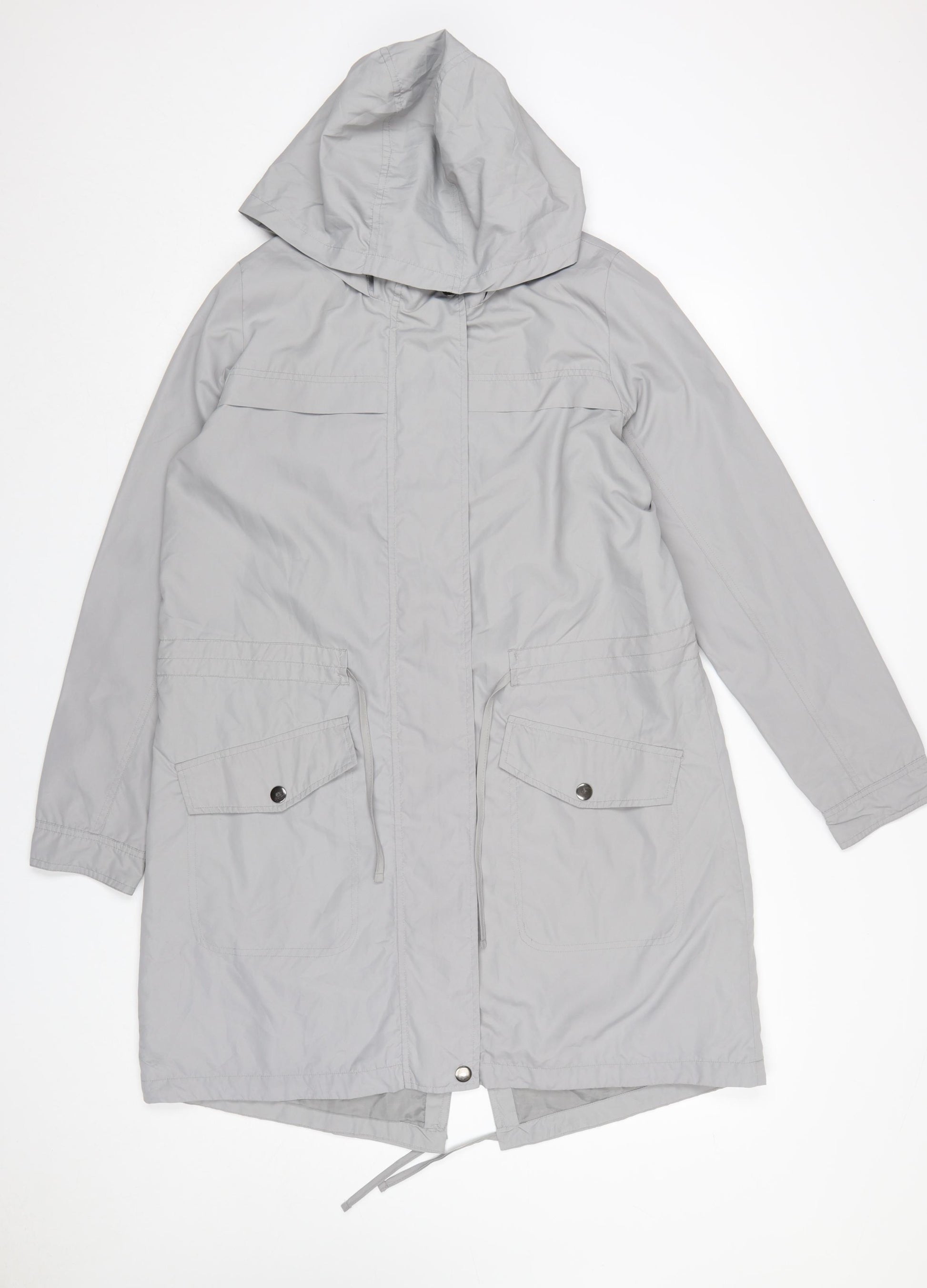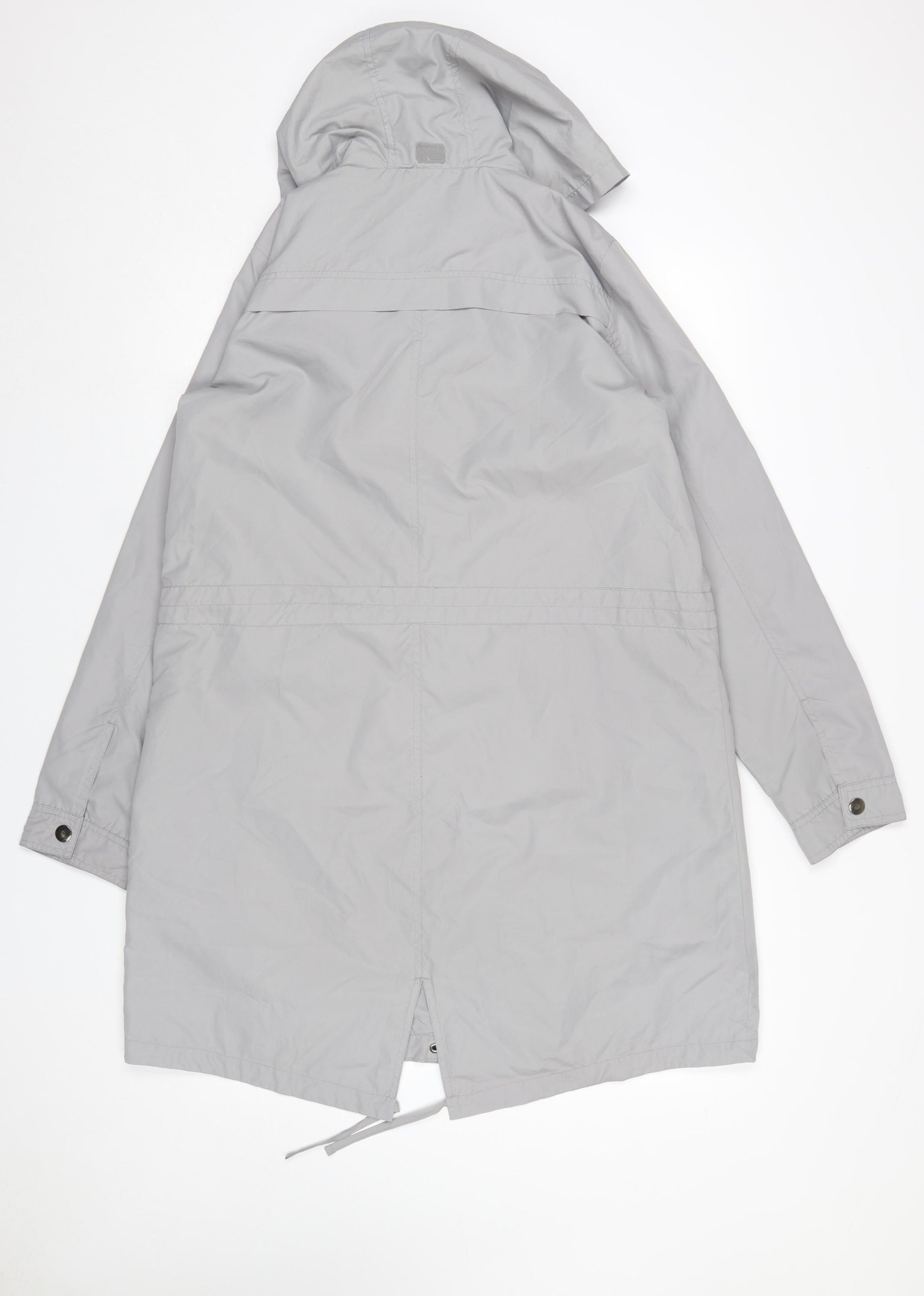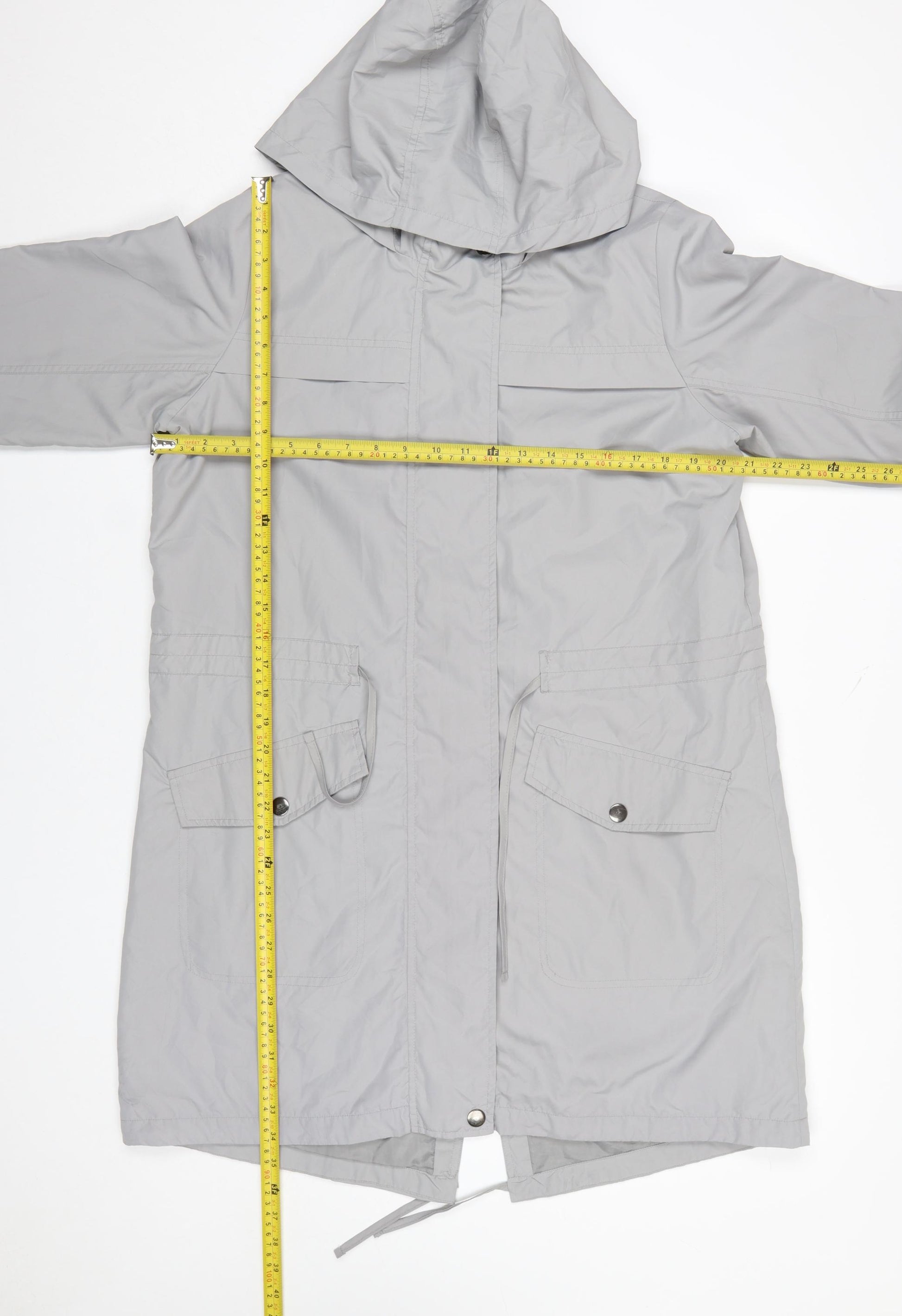 Women’s Grey Hooded Drawstring Long Parka Coat Size 14
