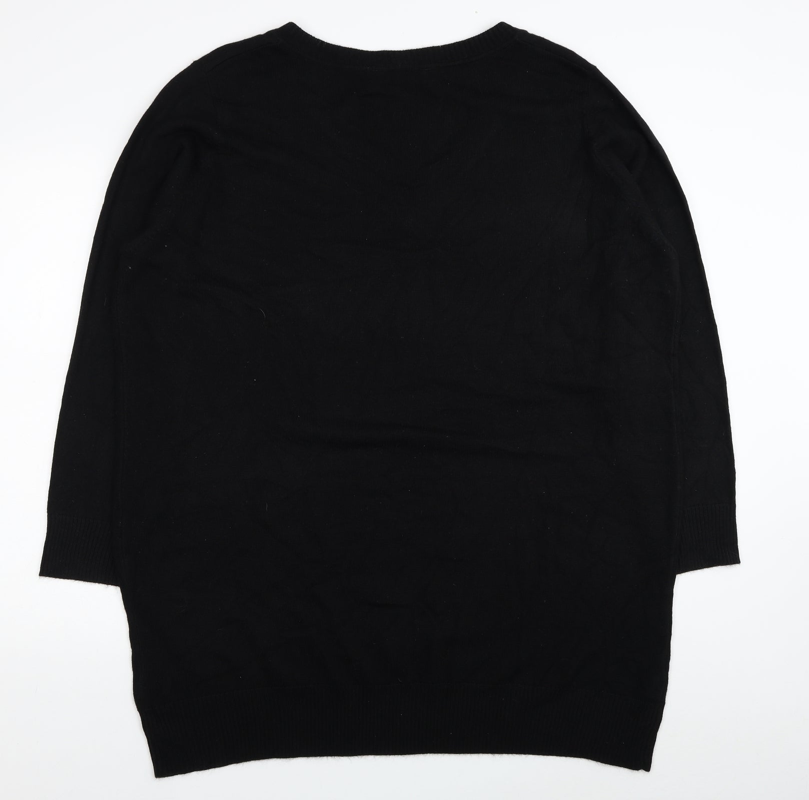 Womens Black Boat Neck Acrylic Tunic Jumper Size 26