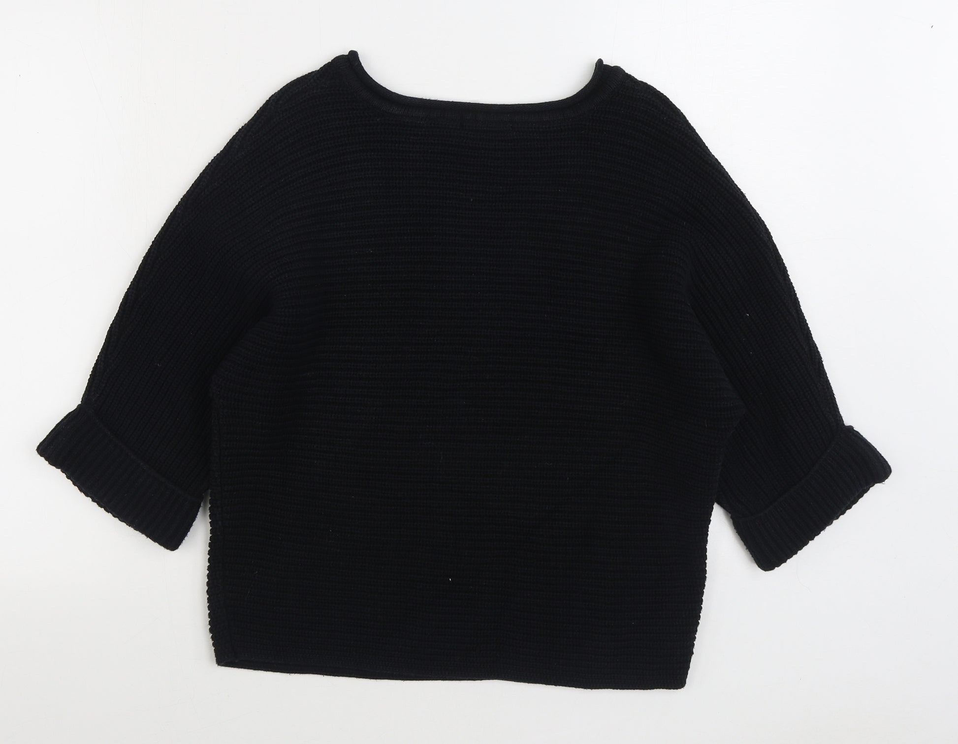 Womens Black Boat Neck Cotton Pullover Jumper Size 12
