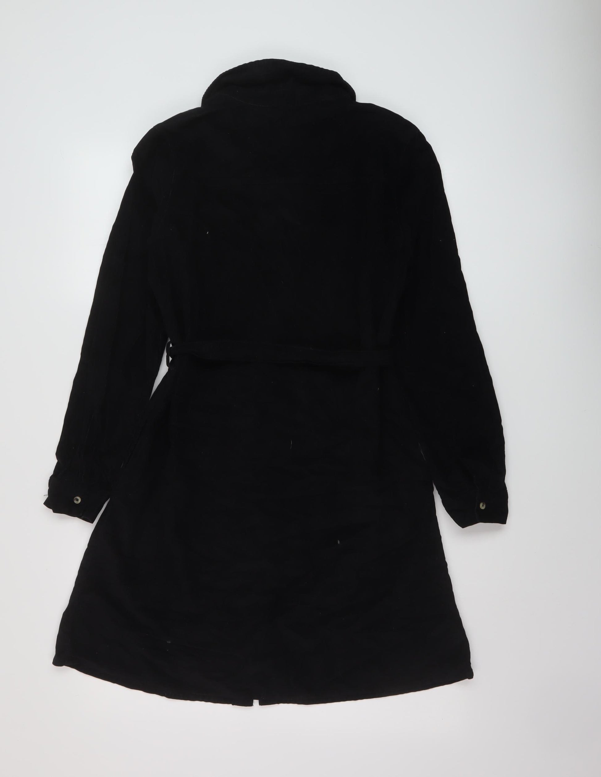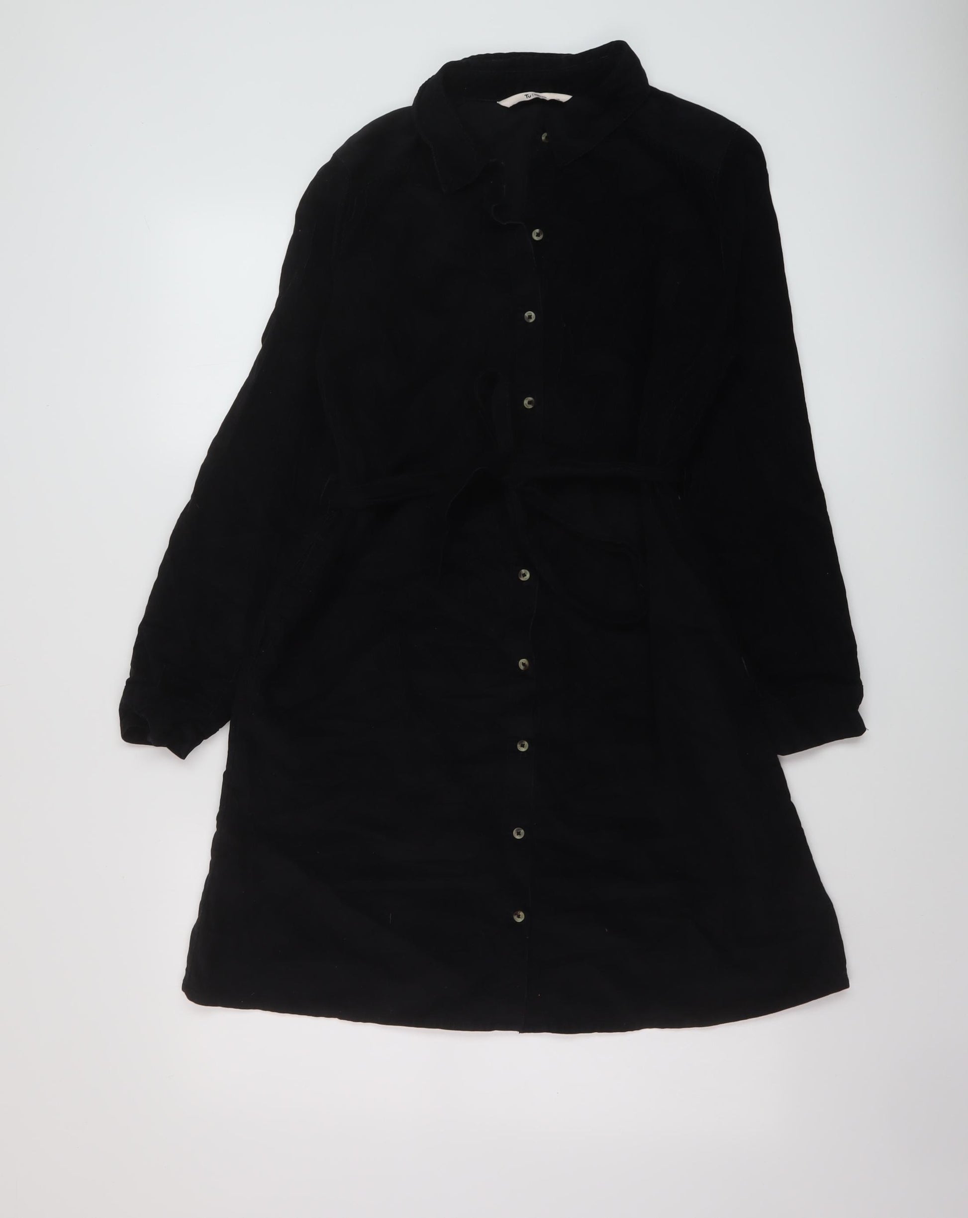 Womens Black Cotton Shirt Dress Size 10 Collared Button
