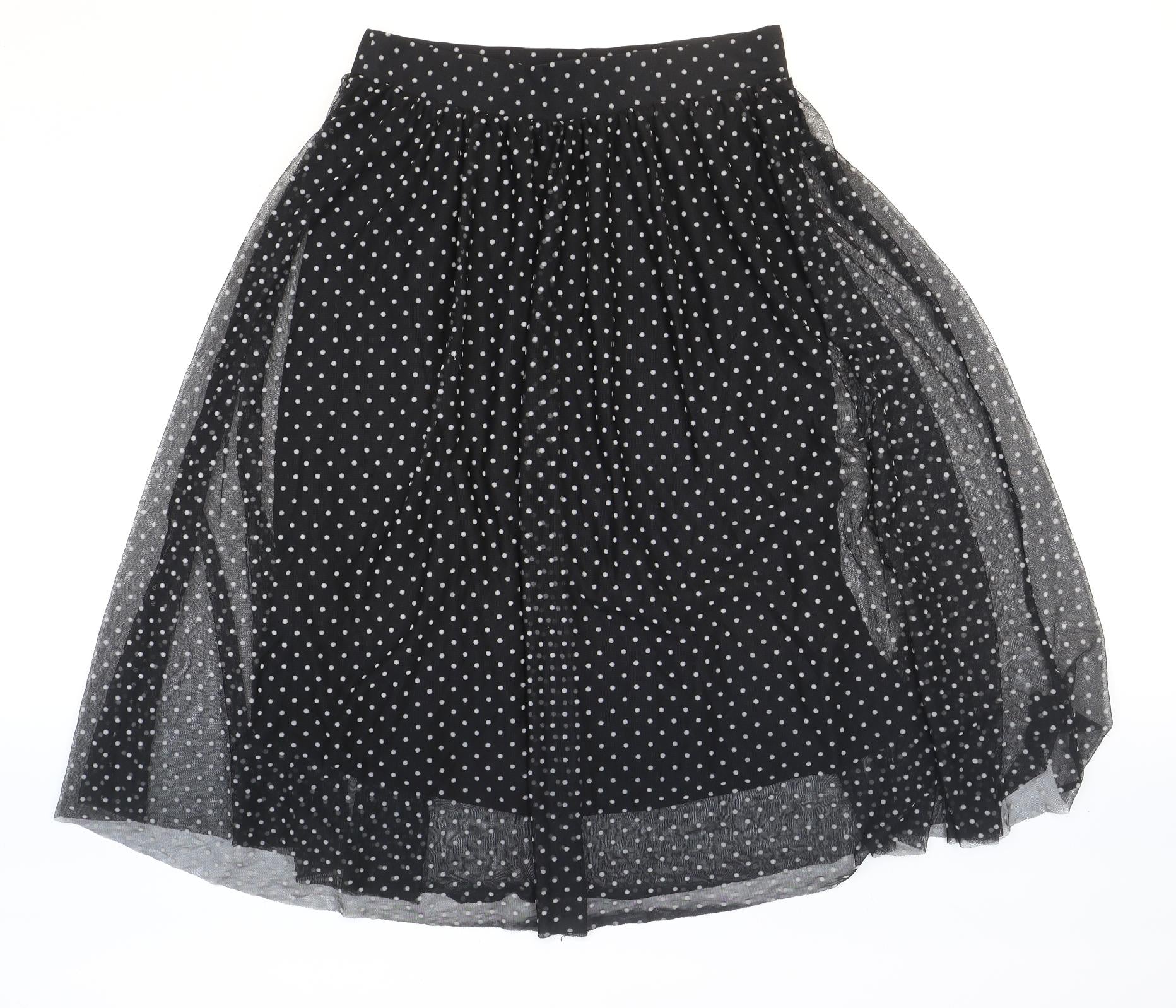 Womens Black Polka Dot Polyester Swing Skirt Size 14
