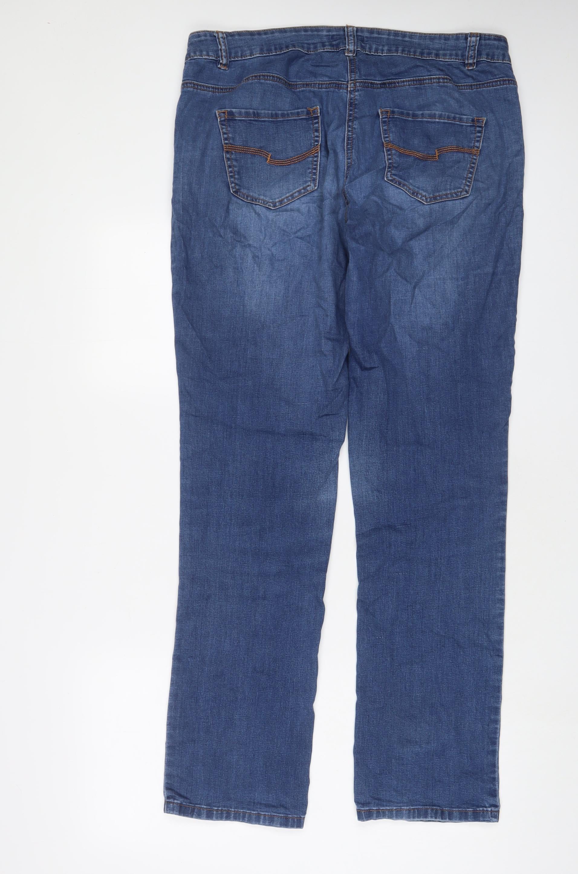 Womens Blue Cotton Straight Jeans Size 14 L32 in Regular Zip
