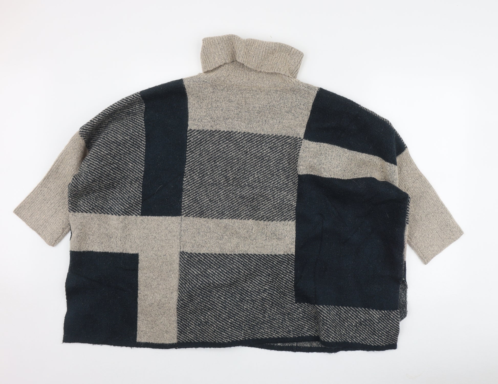 Womens Blue Roll Neck Plaid Acrylic Pullover Jumper Size L