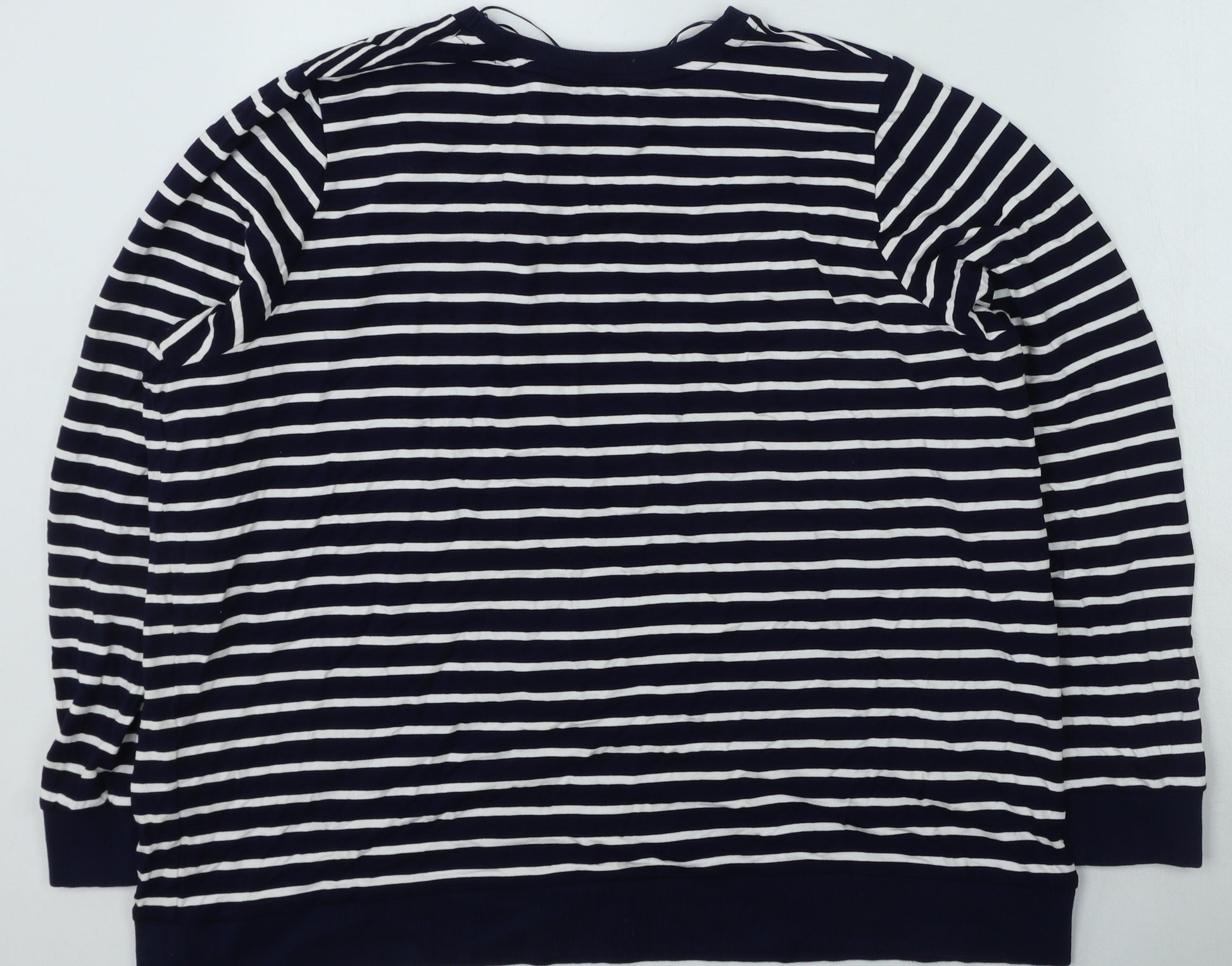 Womens Blue Round Neck Striped Viscose Pullover Jumper Size 24