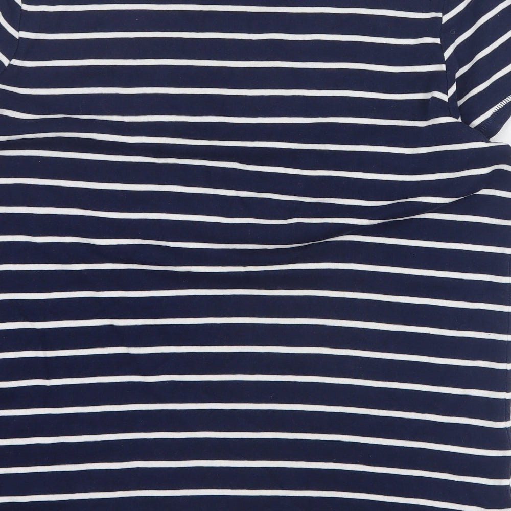 Womens Blue Striped 100% Cotton Basic T-Shirt Size 18 Round Neck