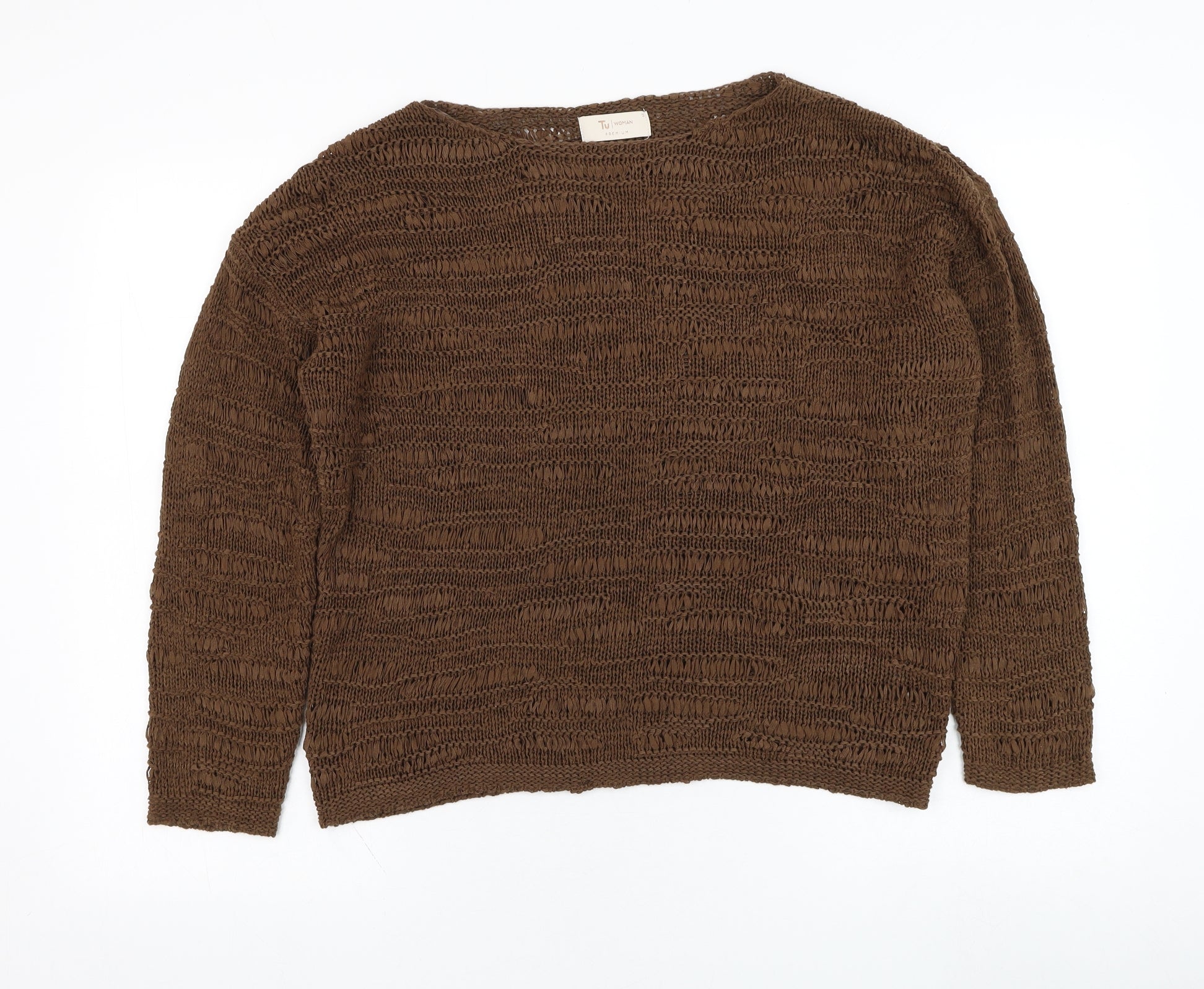 Womens Brown Round Neck Acrylic Pullover Jumper Size 12