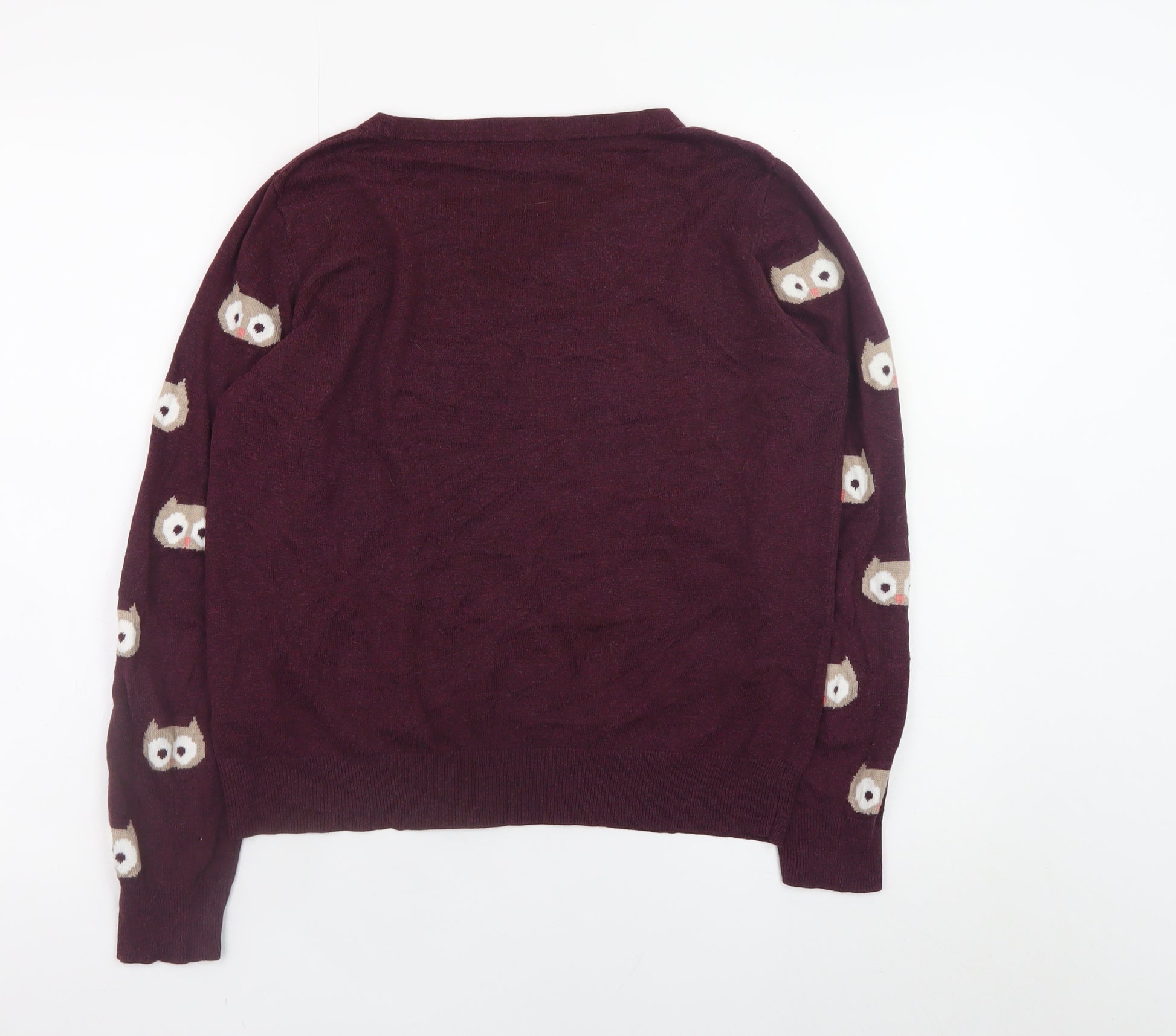 Tu Women's Burgundy Owl Print Pullover Jumper Size 14