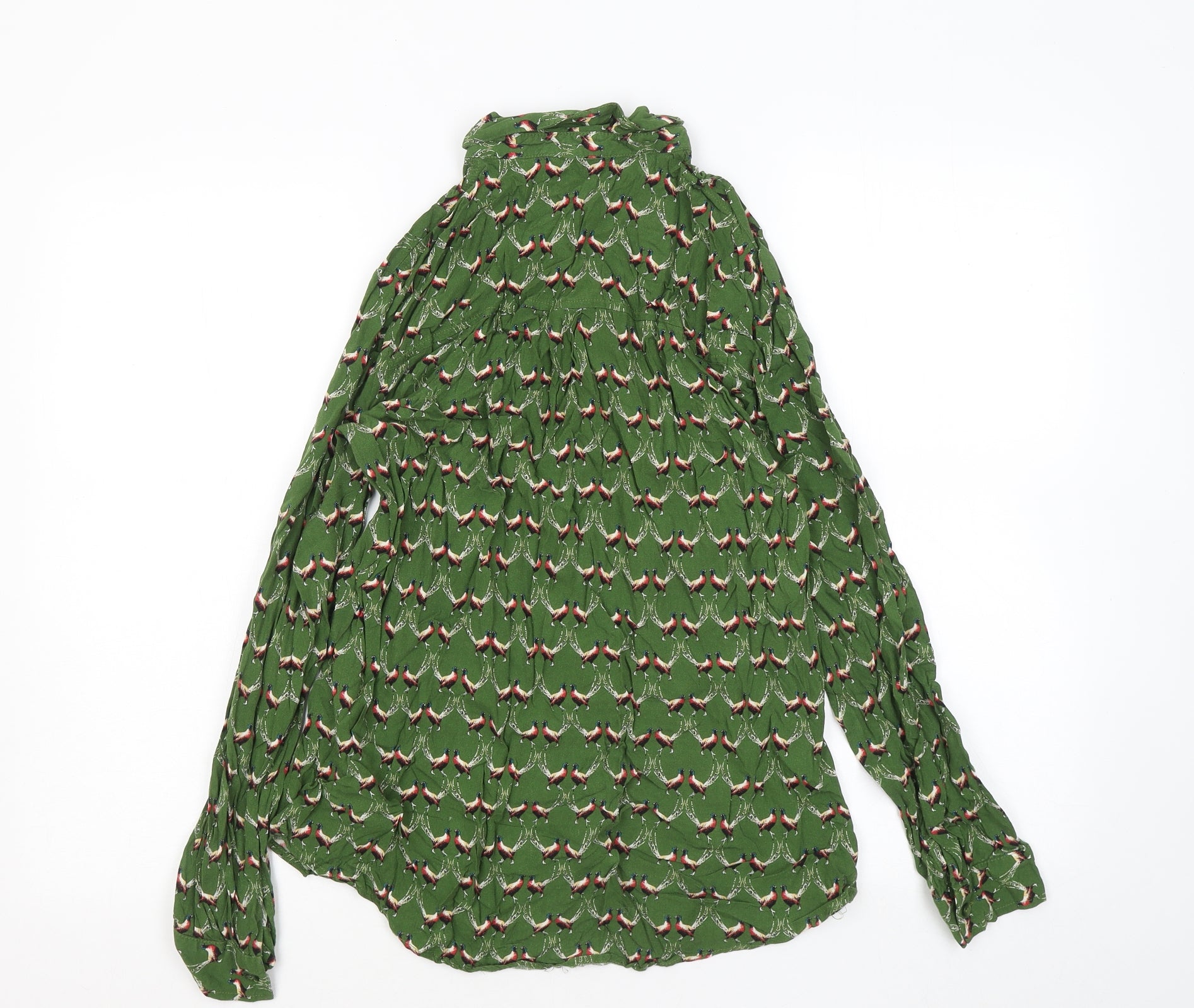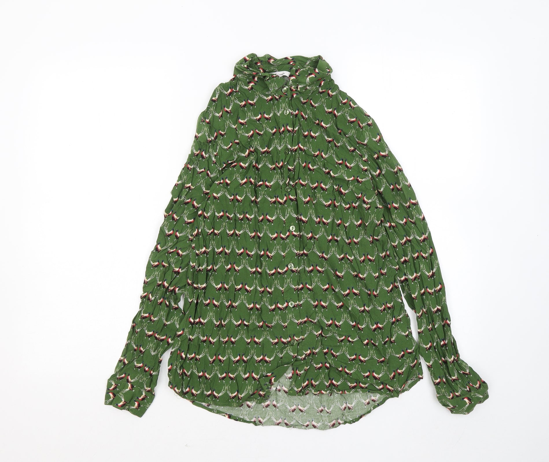 Womens Green Geometric Viscose Basic Button-Up Size 14 Collared - Pheasants