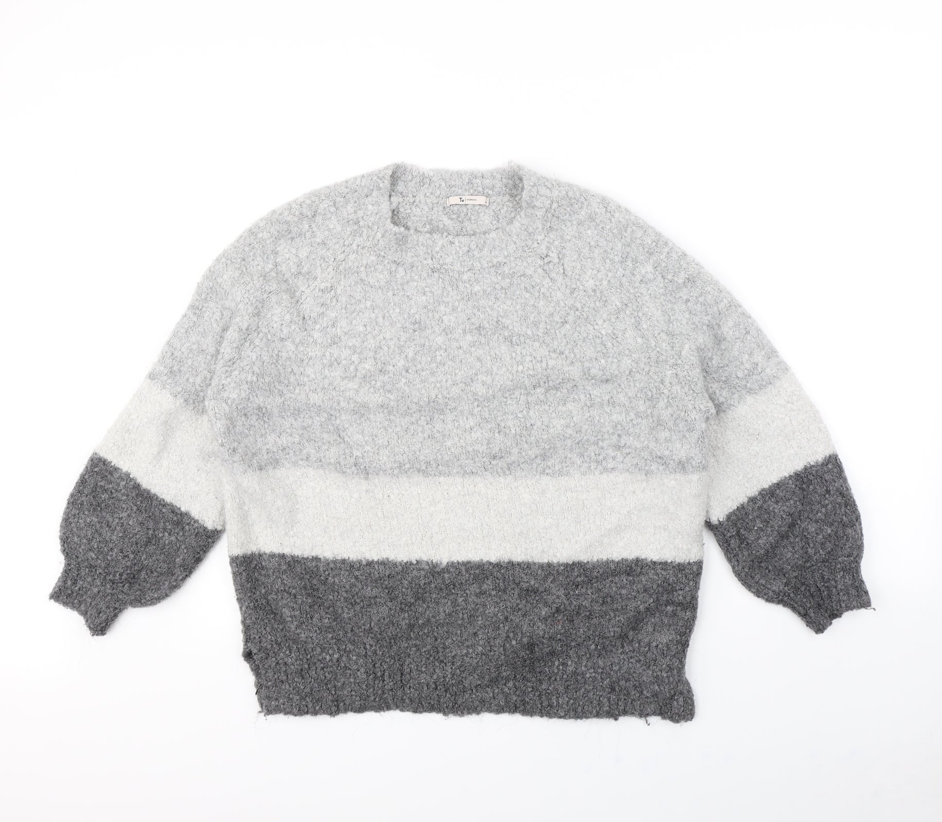 Tu Women Grey Leopard Sleeve Crew Neck Long Sleeve Jumper Size 12