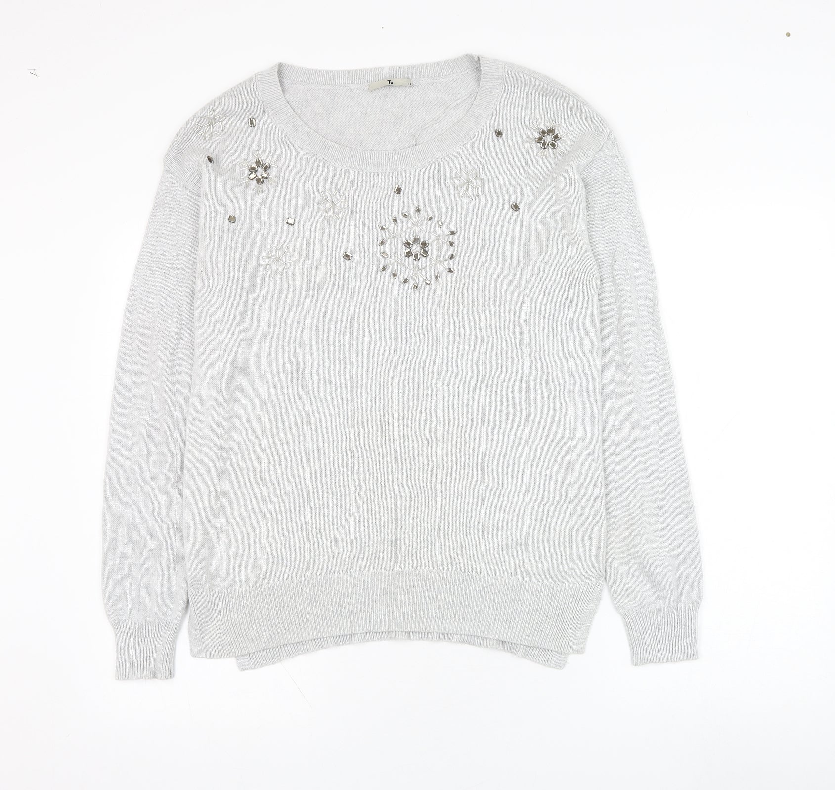 Womens Grey Round Neck Cotton Pullover Jumper Size 14