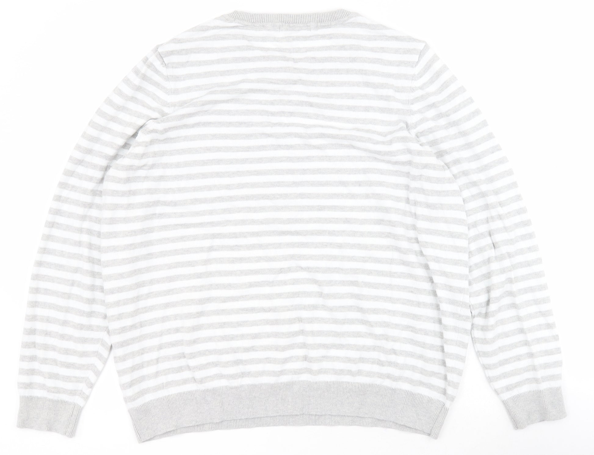 Womens Grey Round Neck Striped Cotton Pullover Jumper Size 20 - Hearts