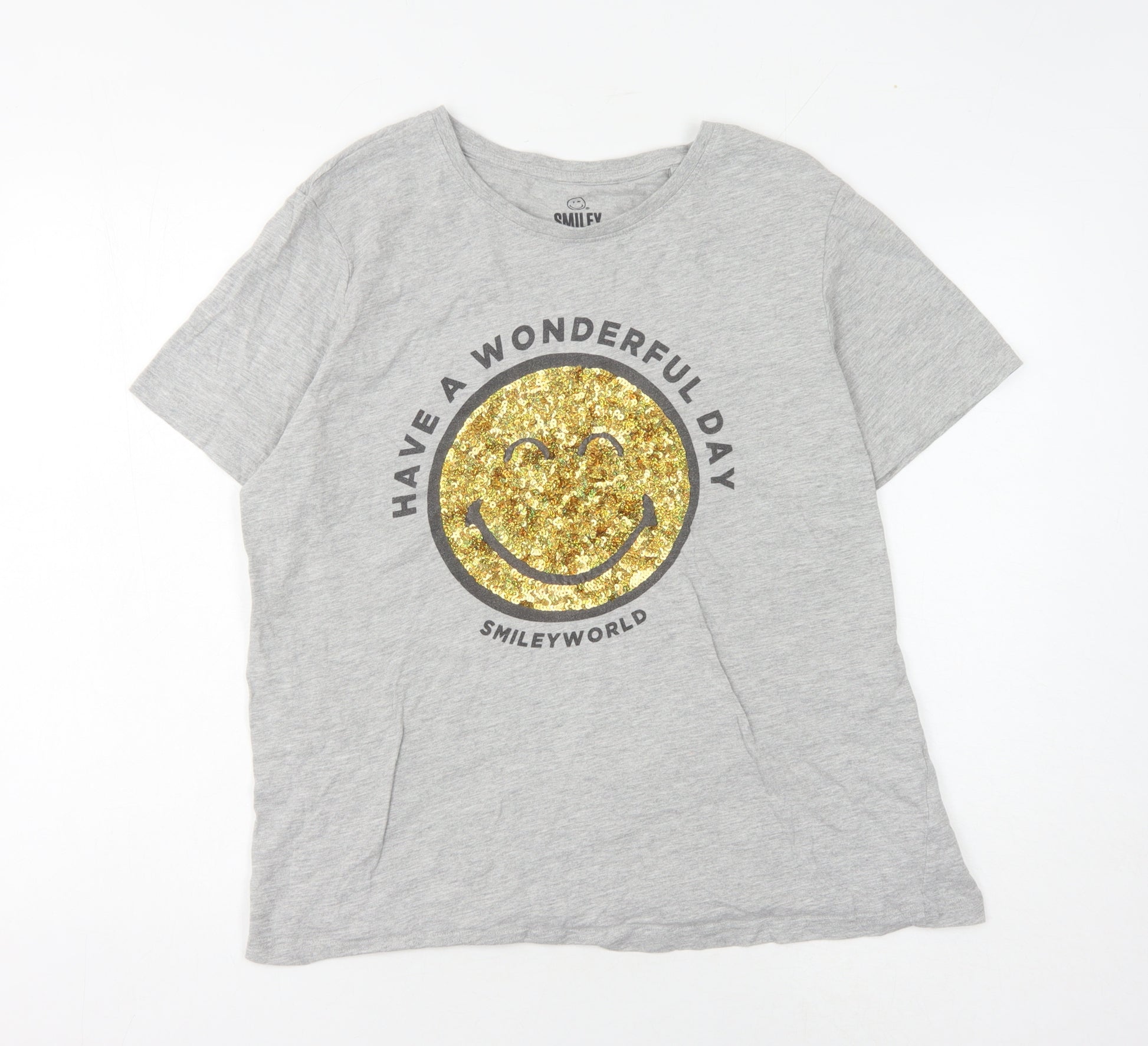 Tu Women's Grey Smiley T-Shirt, Size 18, Casual Style
