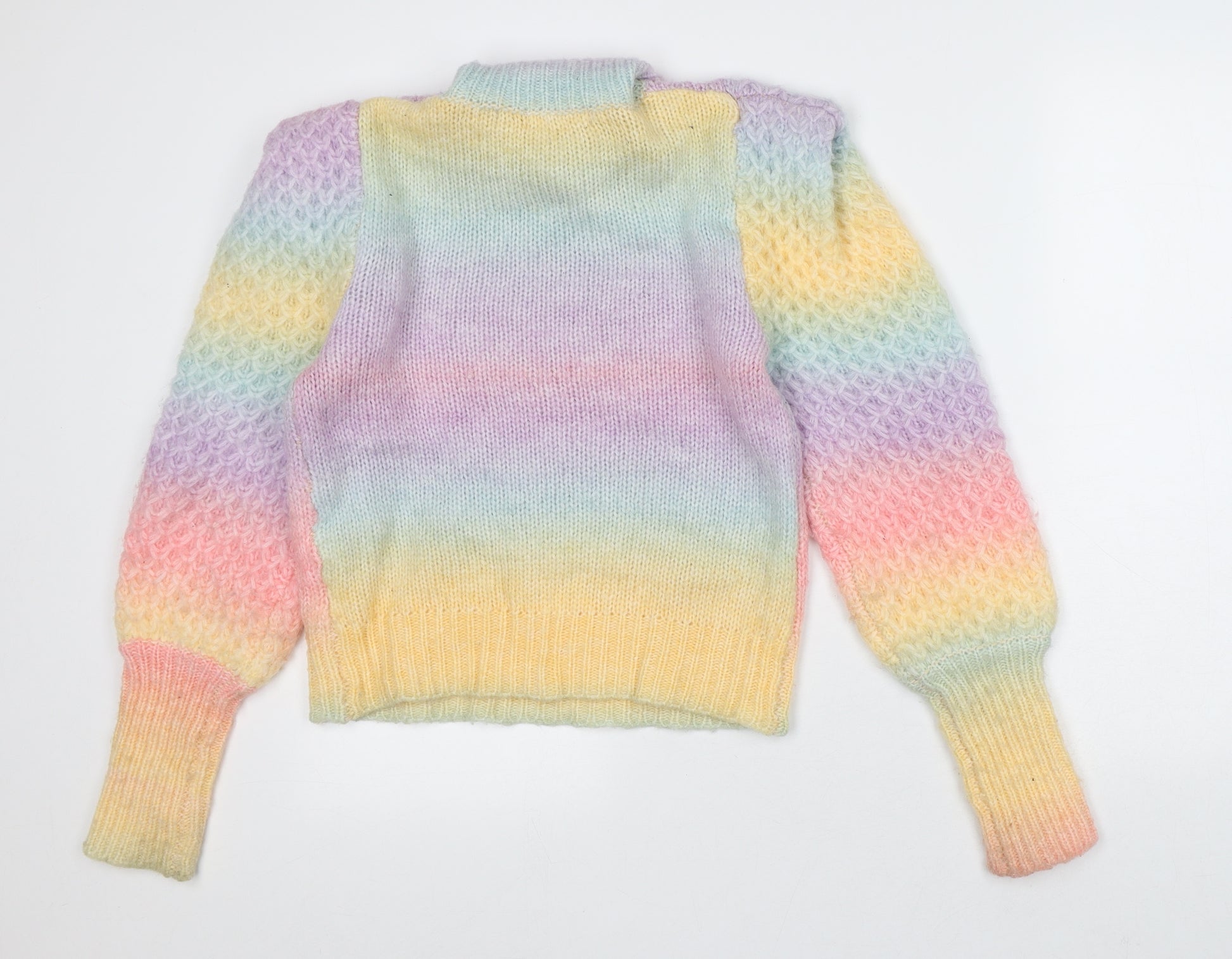 Womens Multicoloured Roll Neck Geometric Acrylic Pullover Jumper Size M