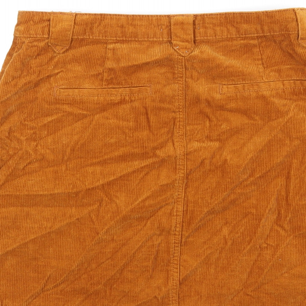 Womens Orange Cotton A-Line Skirt Size 10 Button