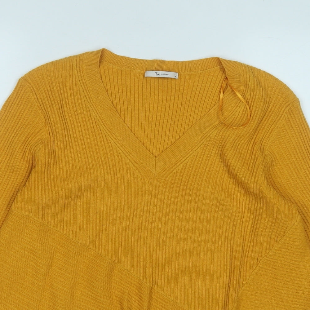 Gok for Tu Women Yellow Cable-Knit Crew Neck Jumper Size 14