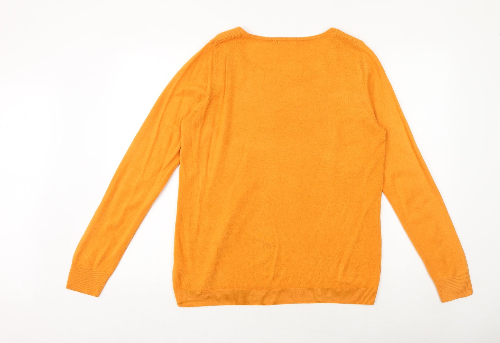 Womens Orange Square Neck Acrylic Pullover Jumper Size 16
