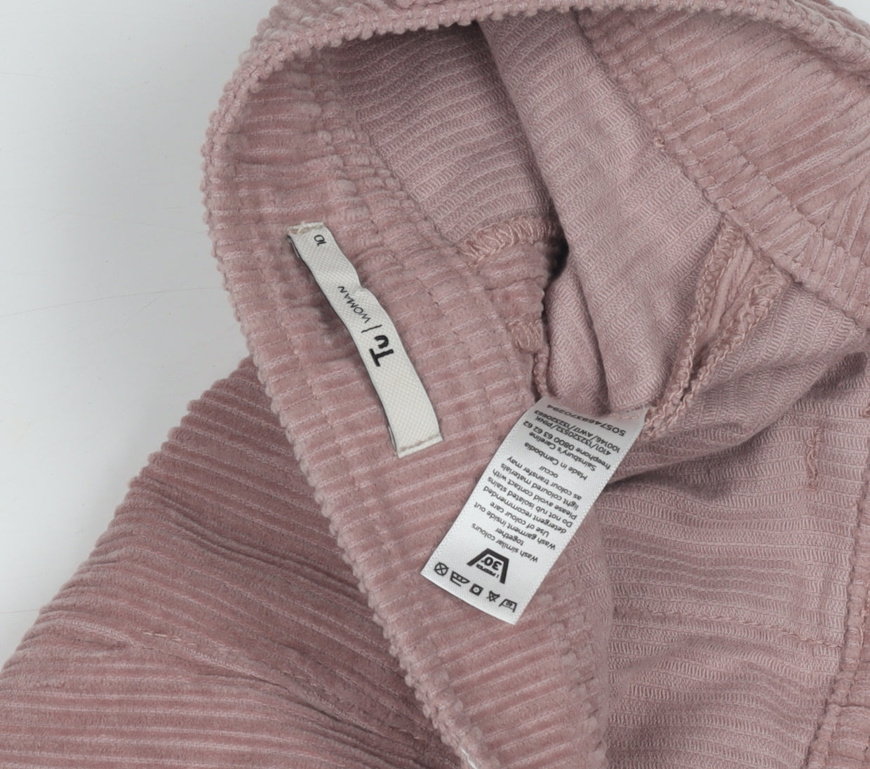 Discover the perfect blend of style and comfort with this TU Women's Pink Corduroy Skirt. Designed for the fashion-forward, this knee-length skirt promises to be a versatile addition to your wardrobe. Crafted from a soft, durable corduroy fabric, it's a perfect choice for autumn and winter outings. The skirt features a straight & pencil style that complements any body shape, offering a flattering silhouette. Its lovely pink hue is both chic and feminine, making it easy to pair with various tops and accessories for different occasions. Whether you're heading to a casual meet-up or a relaxed day at work, this skirt fits right in. Equipped with a convenient front zip closure and functional pockets, it combines practicality with elegance. The mid-rise design offers a comfortable fit that sits naturally on the waist, providing the ease of movement you desire. Made from a blend of 98% cotton and 2% elastane, it ensures both comfort and a slight stretch for added flexibility. Maintain its freshly-new look with simple machine washable care. The garment remains in excellent condition, free from visible wear, ensuring a pristine appearance. Elevate your style game and make a subtle yet striking statement with this must-have piece from TU.