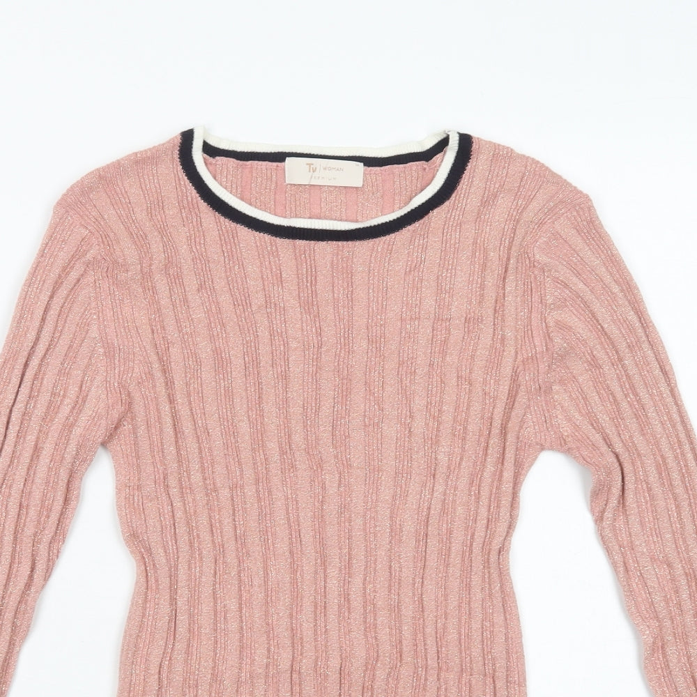 Womens Pink Crew Neck Viscose Pullover Jumper Size 14