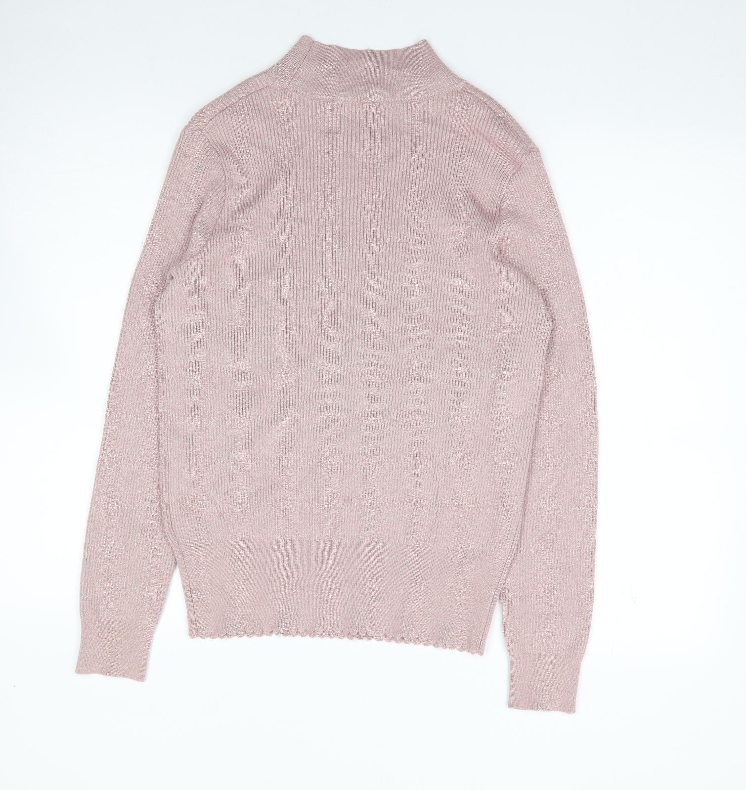 Womens Pink High Neck Viscose Pullover Jumper Size 14