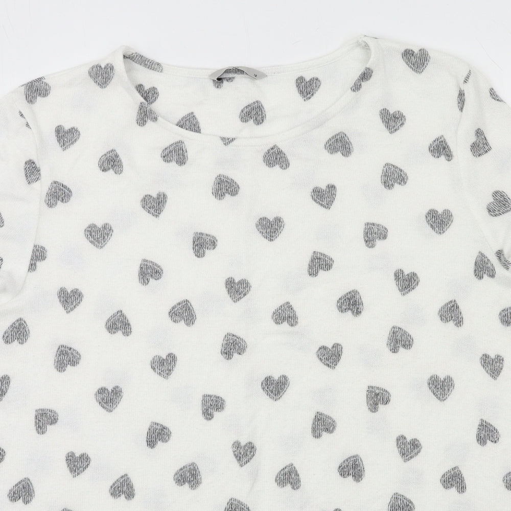 Womens White Geometric Knit Basic T-Shirt Size 18