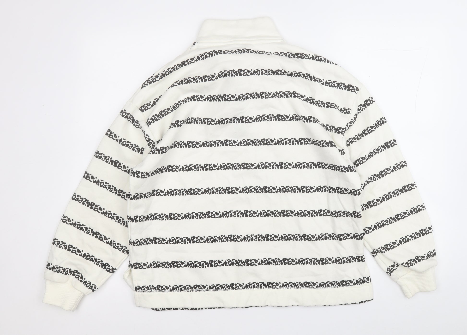 Womens White Striped Cotton Pullover Sweatshirt Size M