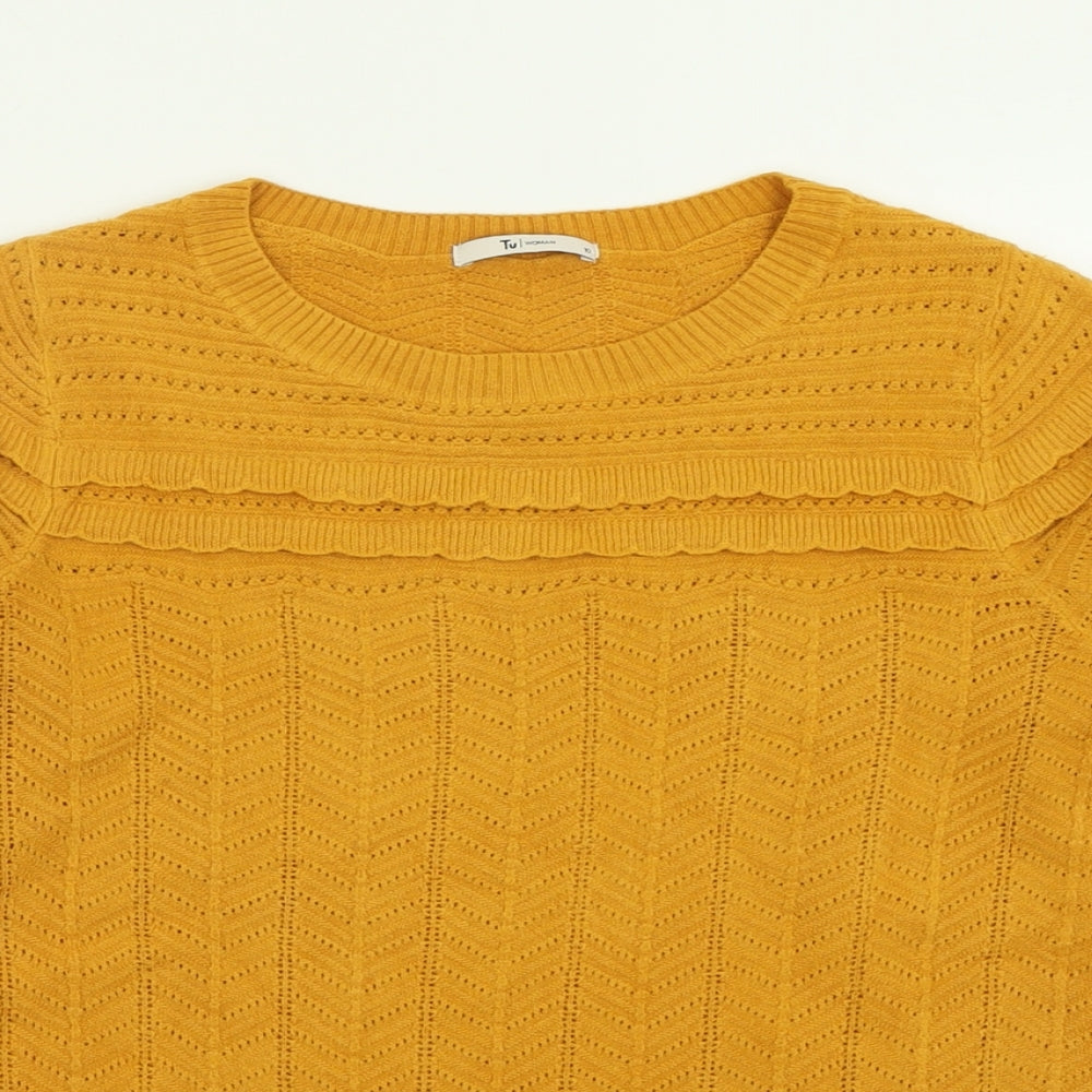 Womens Yellow Crew Neck Acrylic Pullover Jumper Size 10