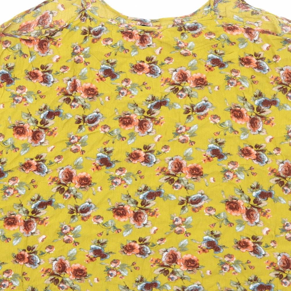 Womens Yellow Floral Viscose Basic Tank Size 22 Scoop Neck