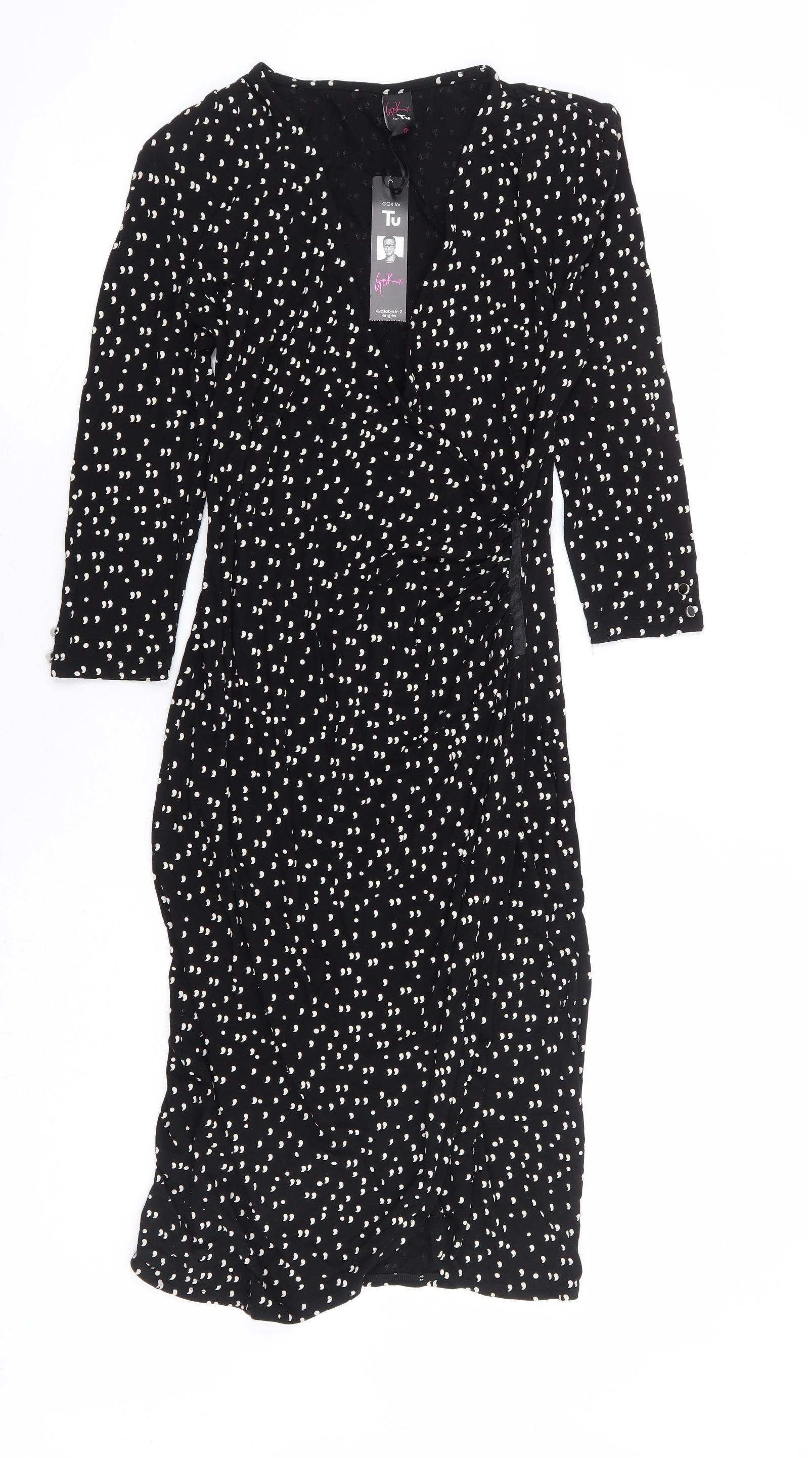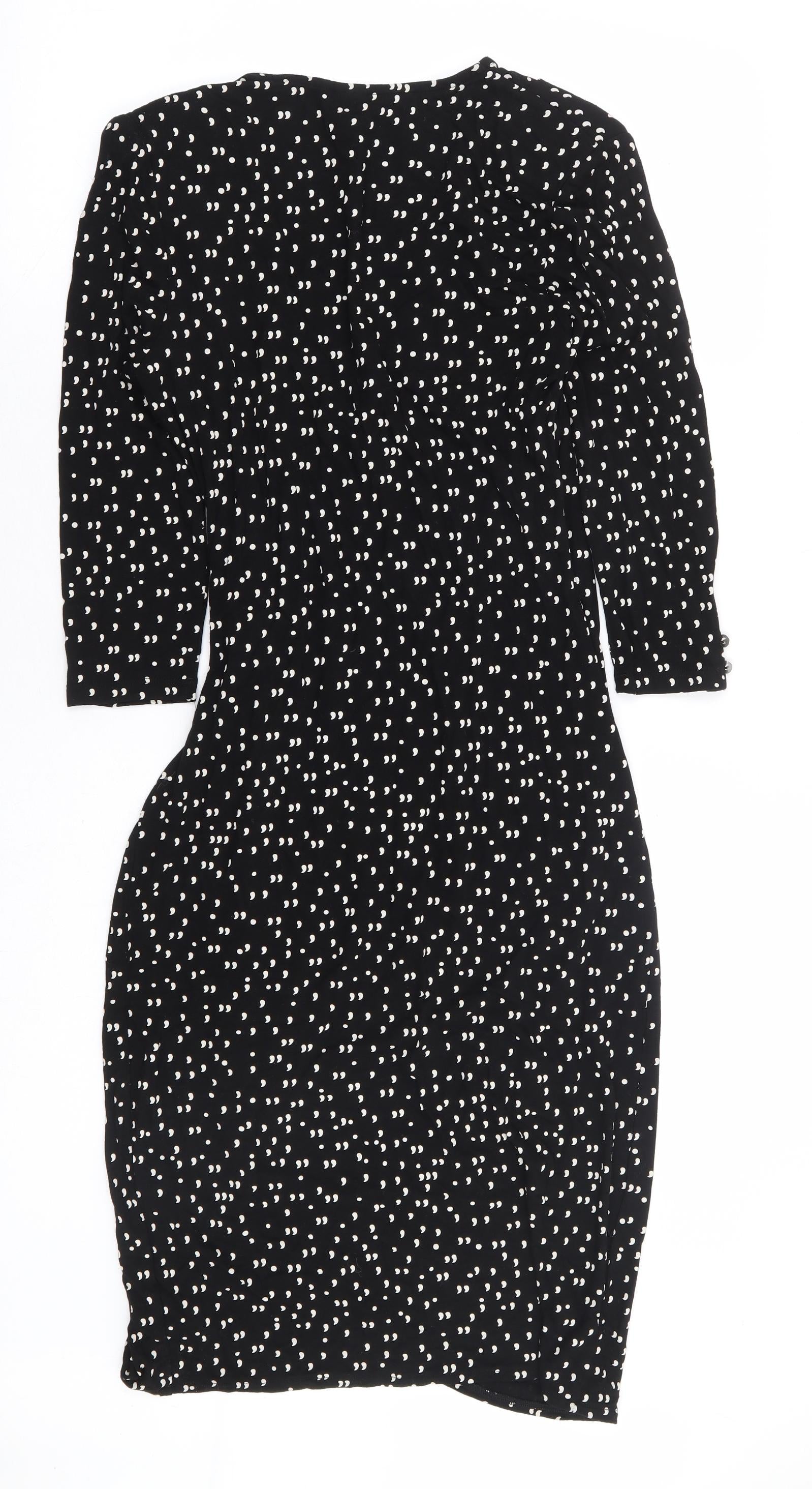 Womens Black Polka Dot Viscose Wrap Dress Size 14 V-Neck Pullover - Short Length