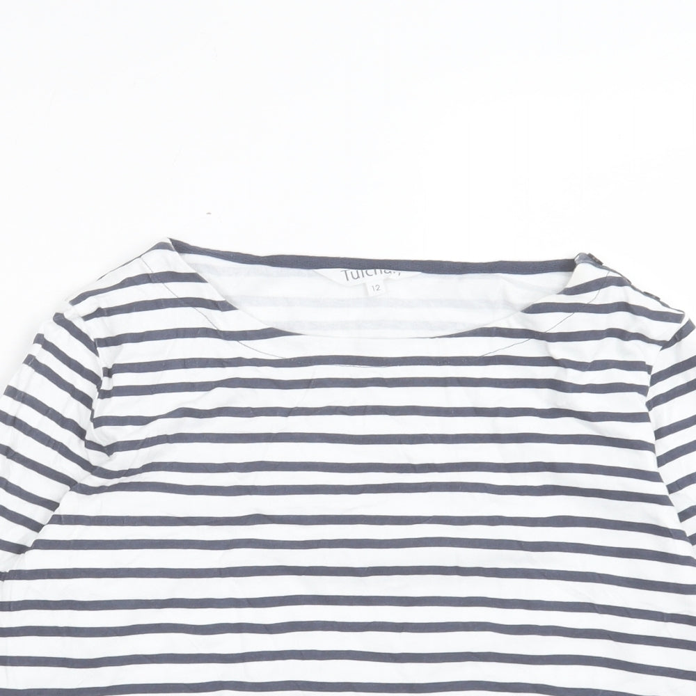 Womens White Striped Cotton Basic T-Shirt Size 12 Boat Neck