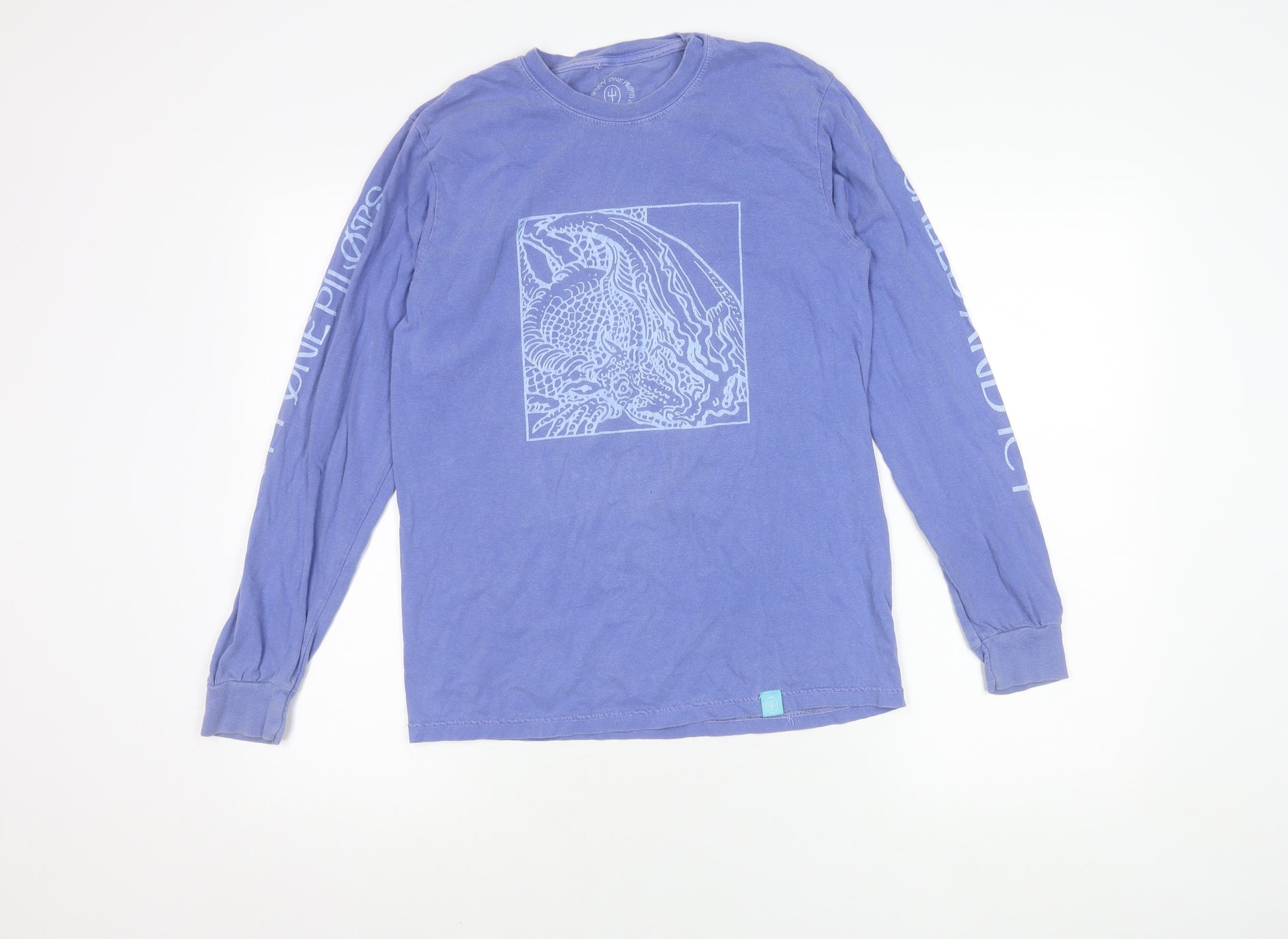 Elevate your casual wardrobe with this eye-catching Twenty One Pilots graphic T-shirt, crafted from 100% cotton for a comfortable and breathable fit. Designed specifically for men, this stylish tee comes in a striking blue hue that perfectly complements the long sleeve design. The graphic print on the front adds a bold statement to your everyday look. Featuring a classic crew neck, this T-shirt offers a relaxed fit ideal for layering or wearing solo. Whether heading to a concert, running errands, or hanging out with friends, this versatile piece is perfect for any occasion. Its durable fabric ensures it remains a staple in your wardrobe for seasons to come. Available in size small, this shirt is machine washable, making it easy to care for. Experience the soft touch and quality you expect from a trusted brand, while expressing your unique style. Perfect for fans of the band or anyone who appreciates contemporary fashion, this T-shirt makes a great addition to any collection.