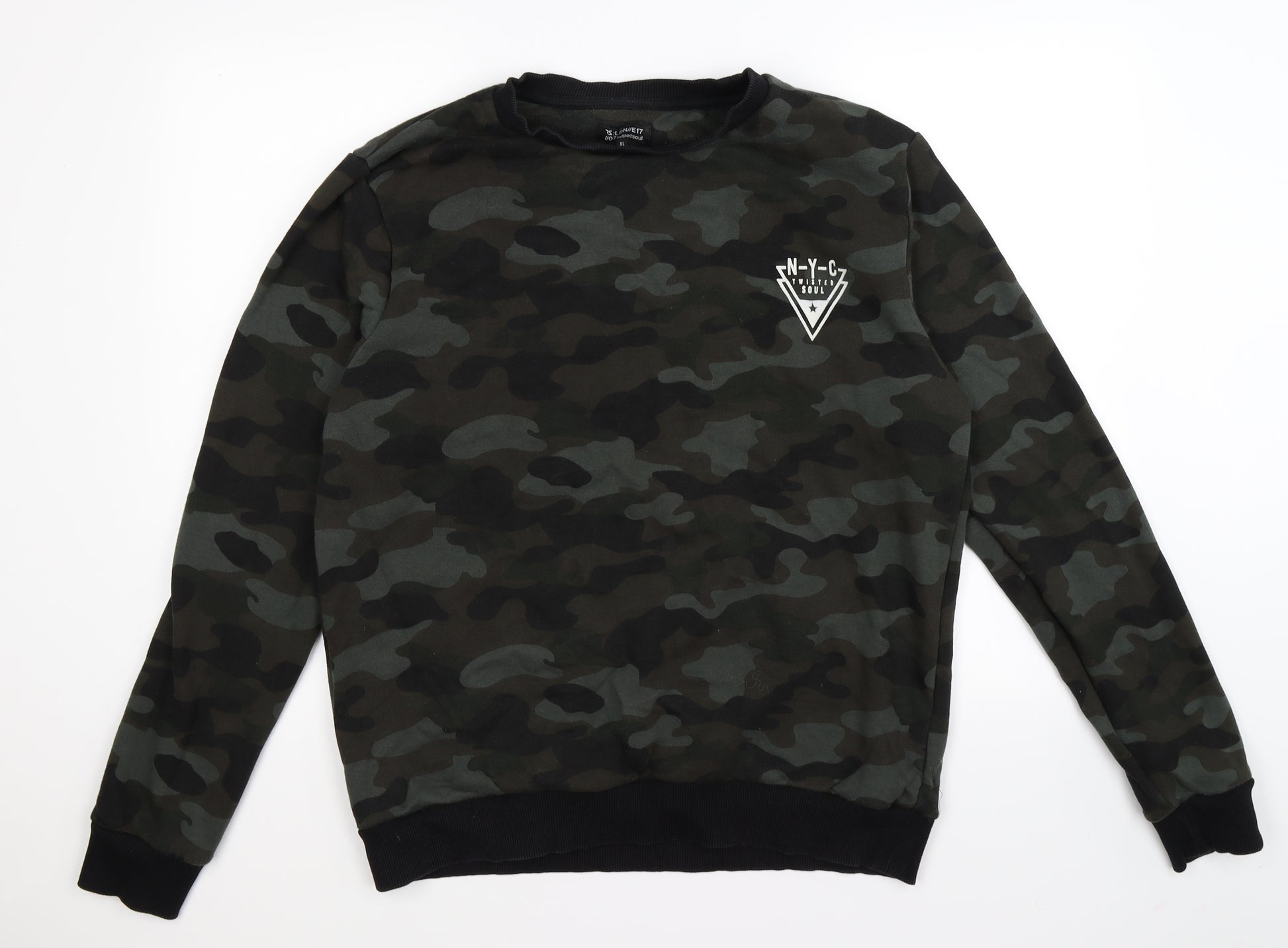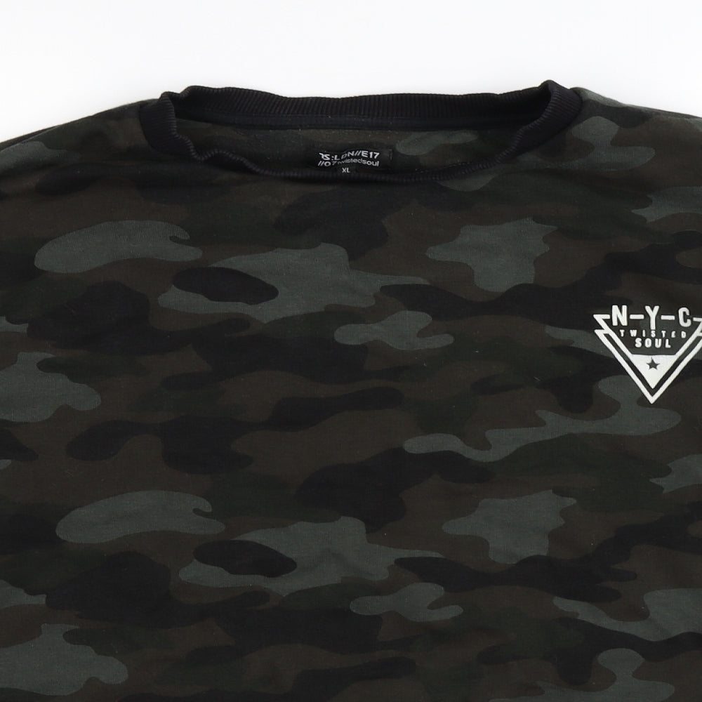 Mens Green Camouflage Pullover Sweatshirt Size XL