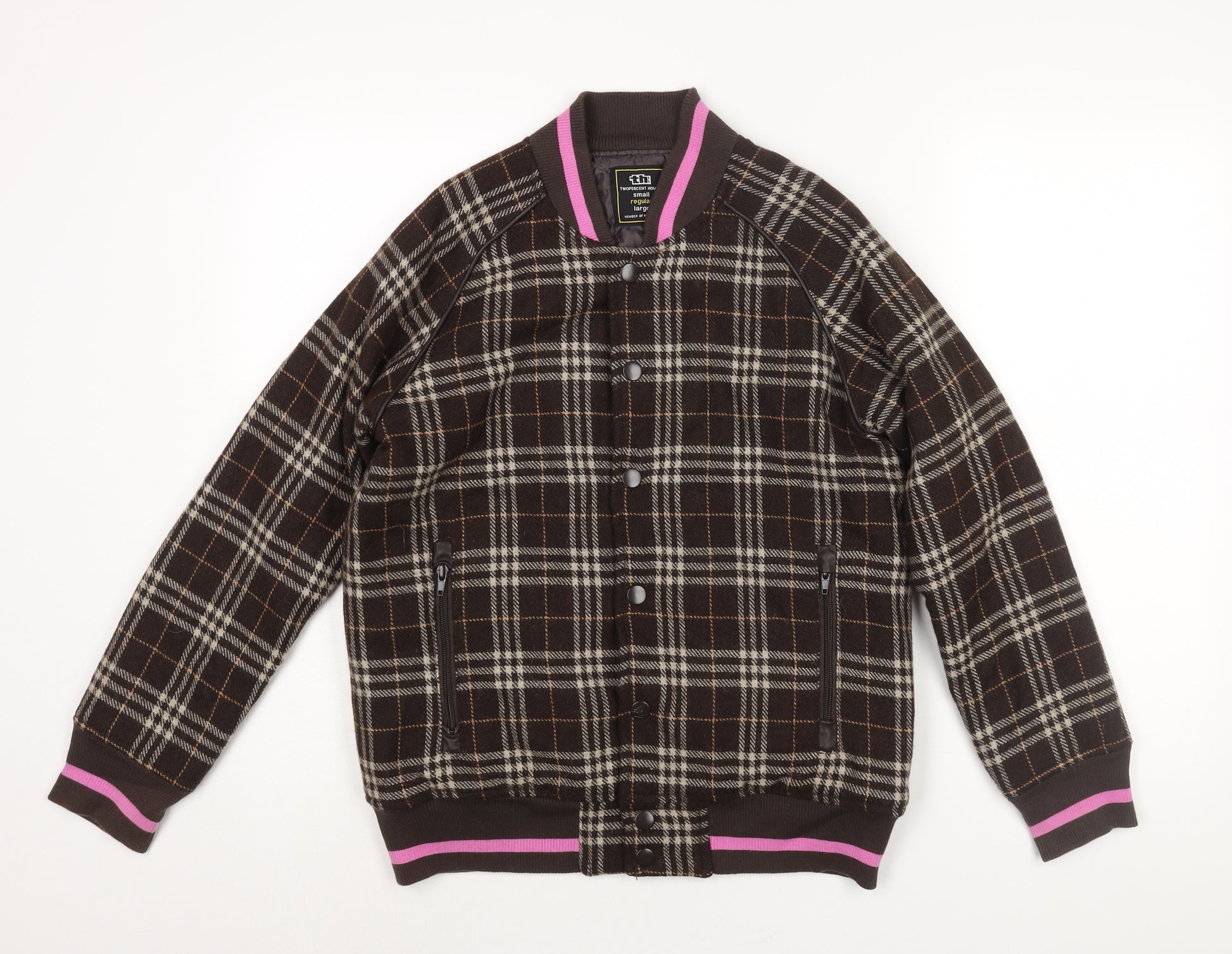 Mens Brown Check Bomber Jacket Jacket Size M Zip