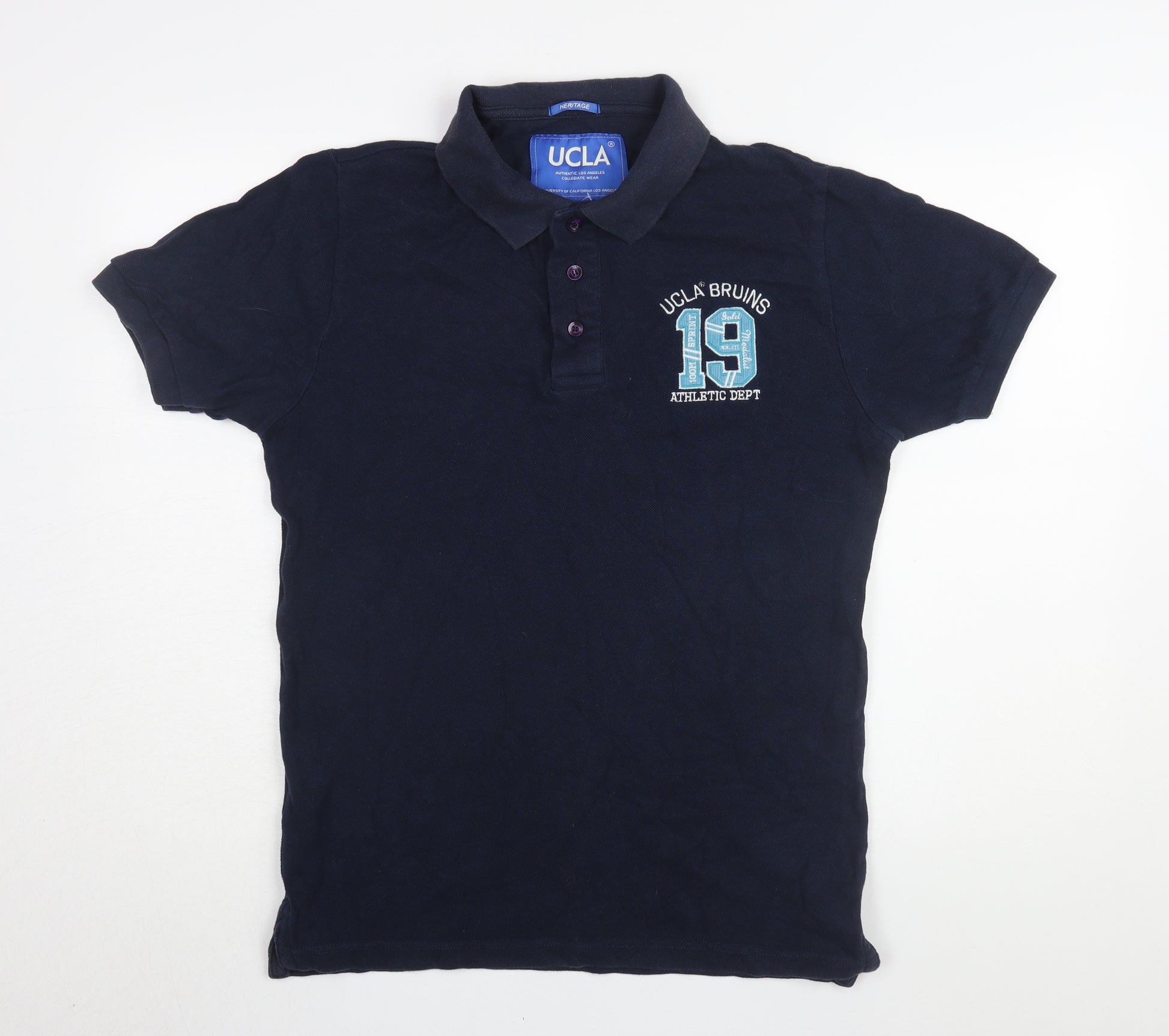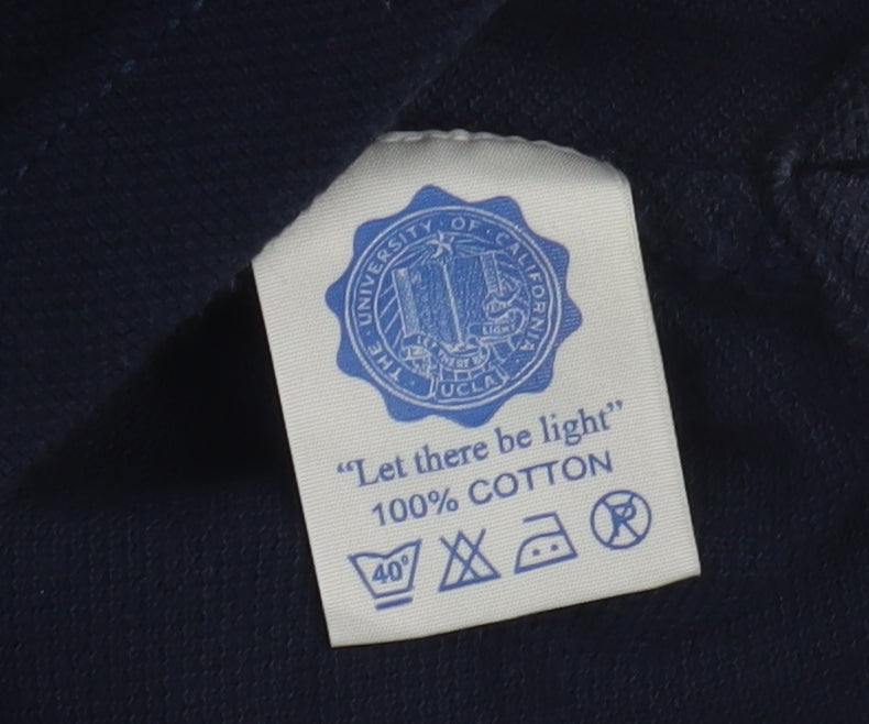 Elevate your casual wardrobe with this stylish UCLA men's polo shirt, an ideal choice for both fans of the brand and those looking for a comfortable, everyday wear. Crafted from 100% cotton, this shirt ensures breathability and comfort, making it suitable for all-day wear. The eye-catching blue colour is both versatile and vibrant, complementing various styles and outfits. The shirt features a classic collared neckline and a button-down collar style, offering a polished and neat appearance. Its short sleeves make it perfect for summer days, while being versatile enough to layer under jackets for colder seasons. The polo is adorned with a prominent UCLA logo, adding a touch of collegiate charm to your look. The graphic print theme and university inspiration make it a unique piece in your collection. Designed for a regular fit, this L-size polo accommodates different body types, ensuring you look sharp without compromising comfort. The jersey fabric type enhances the softness and flexibility of the shirt, perfect for regular casual occasions. The polo is machine washable, ensuring easy care and maintenance. Despite being pre-owned, it is in excellent condition with no visible signs of wear or defects, making it an excellent value for money. Whether for a day out or a relaxed evening, this versatile polo shirt is your go-to choice. Pair it with your favourite jeans or casual trousers for a laid-back yet fashionable ensemble. Embrace the perfect blend of comfort, style, and functionality with this UCLA men's blue polo shirt.