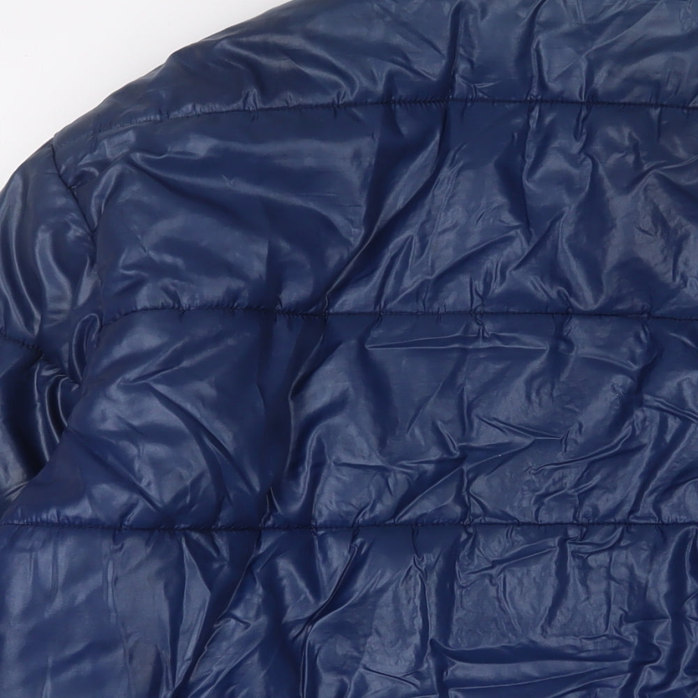 Mens Blue Puffer Jacket Coat Size L Zip - Logo, Embroidered