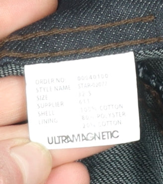 Step up your casual wardrobe with these Ultramagnetic men's black denim jeans in size 32. Crafted from 100% cotton with a dark wash finish, these jeans deliver a perfect balance of durability, comfort, and modern urban appeal. The high-quality denim construction ensures they sit comfortably while offering a reliable fit ideal for everyday wear. Featuring signature Ultramagnetic branding, these jeans showcase a distinctive embroidered logo design and metal zip detailing on the front and rear pockets, adding a touch of edge to your look. Designed in a straight-leg fit, they offer a timeless silhouette that pairs effortlessly with trainers, boots, or casual shoes. The jeans come with a classic button and zip fastening, five-pocket design, and subtle contrasting green stitching details that highlight their individuality. Their mid-rise structure gives off a relaxed and comfortable feel suitable for both day and evening wear. Perfect for cooler months such as autumn and winter but versatile enough for spring, these Ultramagnetic jeans are ideal for urban streetwear enthusiasts who appreciate both function and fashion. While pre-owned, they remain in very good condition with only minor creasing and light wear marks visible, ensuring plenty of life left in this stylish piece. Pair these jeans with a casual t-shirt for a relaxed daytime outfit or layer up with a bomber jacket for a bold street-ready look. With their distinctive design details and premium cotton denim, these jeans represent a mix of comfort, quality, and individuality that will appeal to fashion-forward men looking to make a strong style statement. Whether for everyday use or weekend outings, these Ultramagnetic jeans bring versatility and confidence to your wardrobe.
