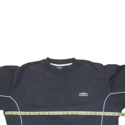 Stay effortlessly stylish and comfortable with this Umbro Men’s Black Crew Neck Pullover Sweatshirt, crafted for all-season wear. Designed with a classic athletic appeal, it features a simple yet bold look with the Umbro logo embroidered on the chest — adding a subtle sporty flair. The black fabric with white piping along the sides creates a sleek contrast, making it easy to pair with jeans, joggers, or shorts for everyday wear. Made from a high-quality fabric blend of 65% Polyester and 35% Cotton, this sweatshirt provides a soft, breathable feel while retaining durability and shape wash after wash. Its regular fit offers a comfortable, relaxed silhouette that allows easy layering. The ribbed cuffs and hem deliver a snug, supportive hold, keeping warmth in during cold weather while maintaining flexibility and comfort. This versatile pullover is perfect for all your active or casual pursuits, whether you’re heading to the gym, relaxing on the weekend, or stepping out for a run. The lightweight construction ensures ease of movement, while the moisture-friendly jersey material adds extra comfort for physical activity. Conditioned in excellent used shape, this sweatshirt has been well cared for, showing minimal signs of wear with no visible damage or marks. It’s a fantastic choice for any man seeking a quality athletic jumper that blends everyday functionality with a timeless sportswear design. Ideal for pairing with sports trousers or casual denim, this Umbro sweatshirt offers a cool, laid-back look that’s effortlessly versatile. Perfect for football fans, fitness enthusiasts, or anyone who appreciates functional casual wear with a clean, athletic edge. Add this classic Umbro piece to your wardrobe and enjoy reliable comfort and style season after season.