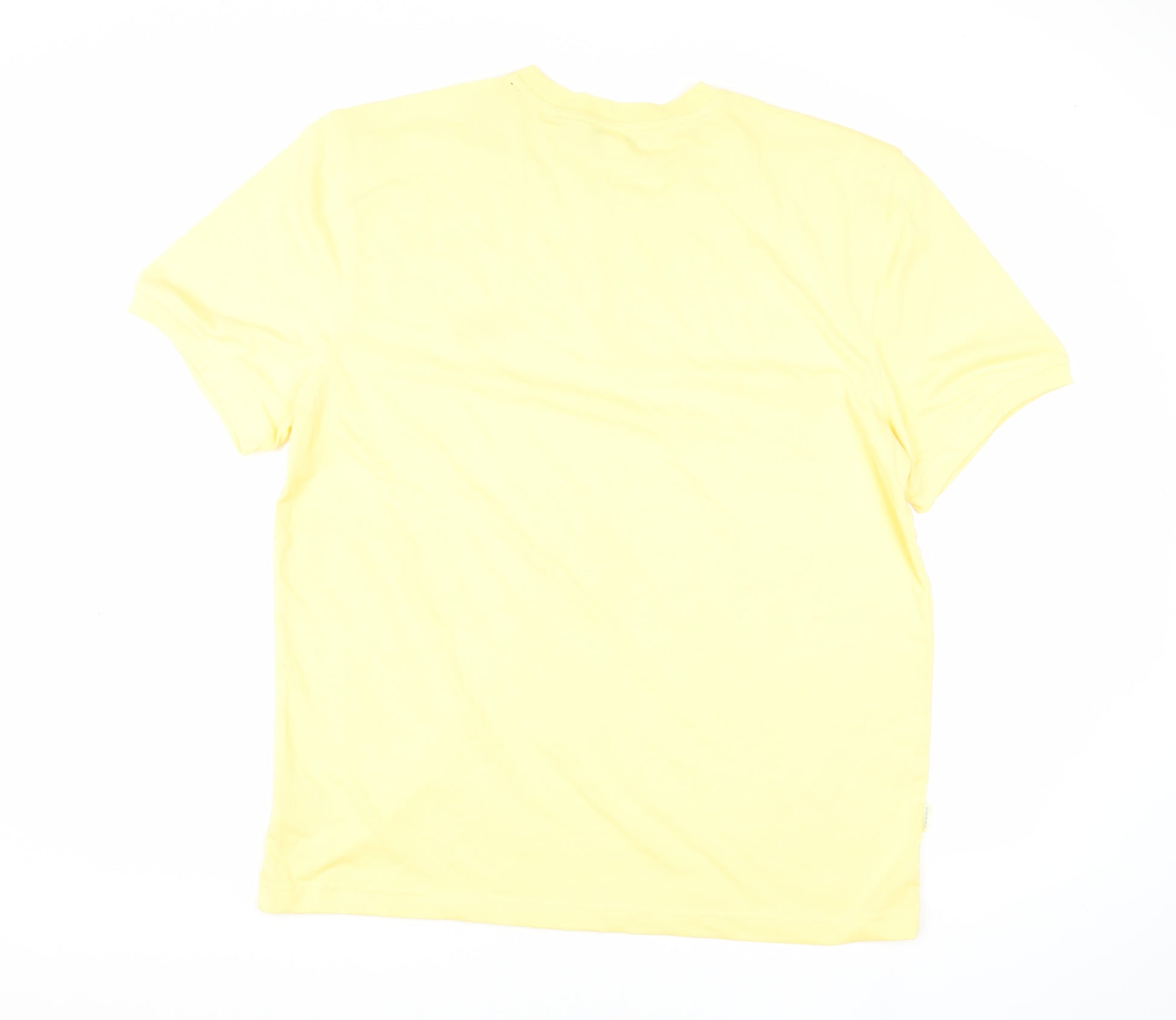 This vibrant yellow Umbro T-shirt is a must-have for any fashion-forward individual looking to add a splash of colour to their wardrobe. Designed for men, this large-sized T-shirt exemplifies comfort and style. Featuring a classic crew neck and short sleeves, it is made from a soft blend of 65% polyester and 35% cotton, offering a lightweight and breathable fabric perfect for all seasons. The solid yellow colour is both eye-catching and versatile, ensuring you stand out whether you're at the gym, on a casual outing, or simply relaxing at home. The T-shirt is adorned with a sleek Umbro logo accent on the chest, enhancing its sporty aesthetic. Its machine washable nature makes it conveniently easy to care for, ready to be part of your regular wardrobe rotation. As a brand new item with tags, this T-shirt promises quality and durability, synonymous with the trusted Umbro brand. Add this to your collection and experience unmatched comfort and style.