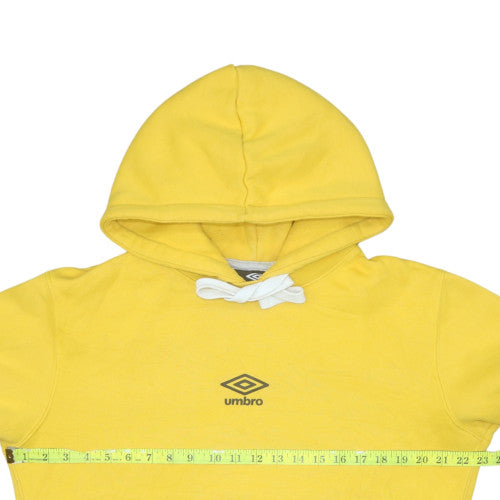 Add a burst of colour to your casual wardrobe with this vibrant yellow Umbro men’s pullover hoodie. Crafted from a soft and comfortable blend of cotton and polyester fleece, it’s designed to offer exceptional comfort while maintaining a classic sporty aesthetic. The hoodie features a traditional drawstring hood with a white tie detail for added contrast, a spacious kangaroo pocket for practicality, and ribbed cuffs and hem for a snug, secure fit. The front showcases the iconic Umbro logo in a clean black print, adding a timeless athletic look that reflects Umbro’s heritage in sportswear design. On the back, a larger Umbro logo in white reinforces the bold, street-ready style. Perfect for layering during cooler months, this hoodie is versatile enough for casual days out, post-gym comfort, or lounging at home. The medium size offers a regular fit that flatters most body types while ensuring freedom of movement. Designed for all-season wear, it’s ideal for autumn through spring, providing warmth without unnecessary bulk. The breathable and durable material makes it suitable for football training sessions, morning runs, or light gym workouts. Machine washable for easy care, it’s a practical addition to any modern wardrobe. Overall, this Umbro hoodie blends sporty functionality with stylish everyday wear, appealing to anyone who values comfort and classic athletic fashion. Its bright yellow tone makes it an eye-catching piece that pairs effortlessly with joggers, jeans, or performance trousers. Whether you’re an Umbro enthusiast, a fan of streetwear, or simply looking for a reliable and comfortable hoodie, this piece is a great choice that balances quality, comfort, and modern design perfectly.