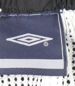 Elevate your activewear collection with these Umbro Men's Black Polyester Trousers. Designed for both comfort and performance, these trousers are perfect for football, gym training, and running. The regular fit and elastic waist closure ensure a comfortable fit for all-day wear. Crafted from high-quality polyester mesh fabric, they offer breathability and durability. With a straight leg style and minimalist design, these black trousers are versatile for various activities and seasons. Easy to care for with machine washable properties, they are a practical addition to your wardrobe. Despite slight wear, they are in excellent condition, ready to support your active lifestyle.