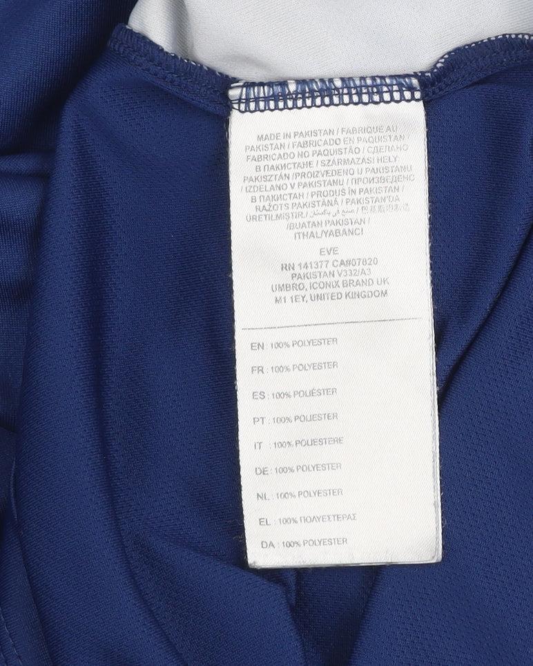 Elevate your sportswear collection with this high-quality Umbro Men’s Activewear T-Shirt. Ideal for both football training and gym sessions, this performance-driven top offers comfort and breathability with its 100% polyester construction. Featuring a colourblock design in navy and light blue, it provides a sleek, athletic look while ensuring moisture is quickly wicked away to help keep you cool and dry during vigorous activities. The short sleeve and raglan fit enable ease of movement, making it perfect for football, gym workouts, or general activewear. A printed Umbro logo on the chest and the team crest embroidery add to the sporty aesthetic, enhancing its authentic appeal. Designed with a classic crew neckline, lightweight build, and durable stitched seams, this t-shirt is both practical and stylish. This item is in excellent used condition, showing minimal signs of wear and offering plenty of life left for its next owner. Machine washable and easy to care for, it’s a great option for men seeking comfort and function in one garment. The medium fit suits those with a chest size around 100 cm and a standard shirt length of 75 cm, providing a form-fitting yet flexible profile. Ideal for football practice, gym workouts, or casual sporting occasions, this Umbro athletic top is suited for spring through autumn seasons and delivers performance you can depend on. With its blend of modern design, breathable materials, and trusted Umbro sportswear quality, this piece represents excellent value for money and versatility whether used for training or leisure wear.