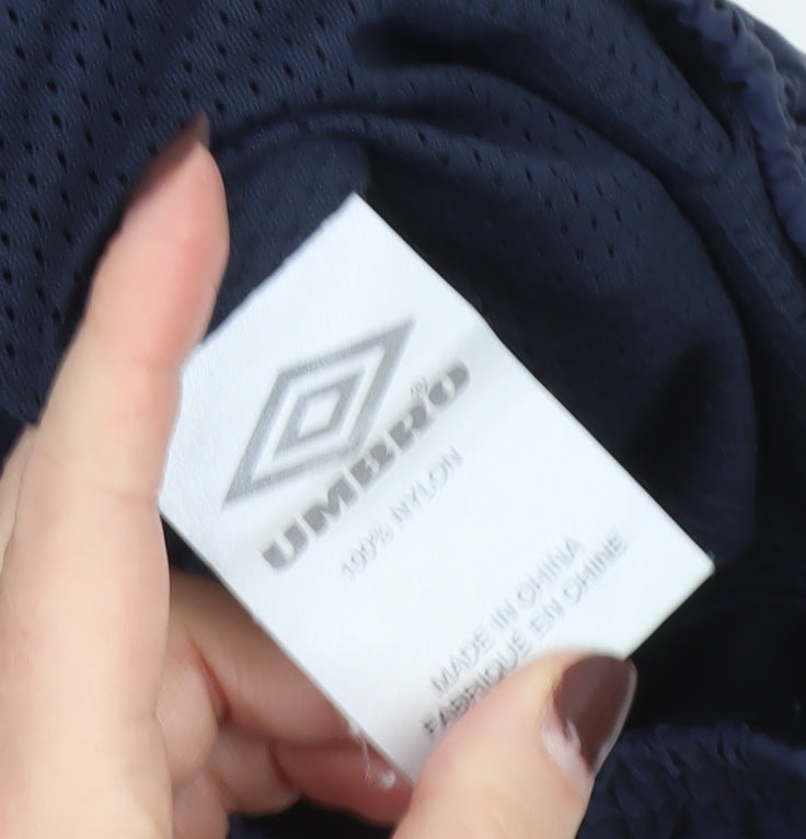 Step into sporty comfort and vintage charm with these Umbro Men's Ireland Football Sweatpants, ideal for casual wear or light training sessions. Crafted from 100% nylon, these navy blue trousers offer a lightweight, breathable fit that delivers both performance and ease of movement. Featuring elasticated ankles and waistband for an adjustable, secure fit, they also include side pockets for functionality. The reflective detailing across the lower legs, combined with embroidered Ireland and Umbro Pro Training logos, adds a classic sporty look that stands out both on and off the pitch. Perfect for layering during cooler months or wearing on their own during spring training sessions, these trousers provide versatility in every season. Designed for the everyday athlete or casual football fan, the soft microfibre fabric ensures a smooth and comfortable wear whether you’re in motion or relaxing at home. The mid-rise waist and straight leg fit keep the silhouette modern yet relaxed, while the practical drawstring closure adds to the adjustable convenience. With a clean athletic look and subtle branding, these trousers pair effortlessly with trainers, sweatshirts, or team gear, making them a key wardrobe piece for anyone who appreciates timeless, durable sportswear. Despite showing minimal signs of wear, they remain in very good condition with strong colour integrity and no noticeable flaws, ensuring long-term quality. A great find for enthusiasts of classic Umbro heritage, Irish football followers, or lovers of durable, well-made sports apparel, these trousers offer authentic comfort and style. Don’t miss the chance to own this distinctive pair — practical, collectible, and ready for everyday use.
