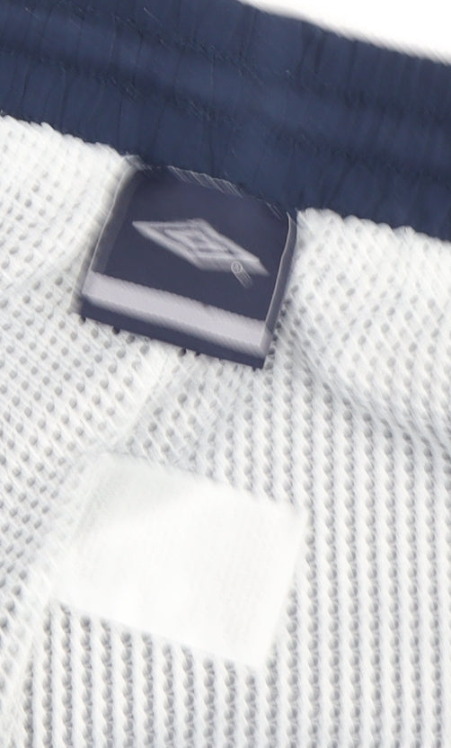 Elevate your athletic wardrobe with these Umbro Men's Blue Track Pants, designed for versatile performance and everyday comfort. Crafted with 100% high-quality polyester and featuring a breathable mesh fabric, these trousers are perfect for all forms of exercise, from running and jogging to gym training. The elastic waistband ensures a comfortable, secure fit while allowing easy movement, making them ideal for activewear. Accented with side zip pockets, these track pants not only offer storage for your essentials but also enhance their functionality. Designed in a classic, regular fit, they boast a straight leg style, providing a timeless silhouette suitable for every body type. The material is machine washable, ensuring ease of care and durability through regular use. Finished in a universally appealing blue, these trousers slide effortlessly into any sports-themed wardrobe. Whether you're hitting the trail in autumn, or gearing up for a spring jog, the pants' all-season design becomes the go-to choice year-round. Though in excellent condition with minimal signs of wear such as slight lint, these pants characterize both robust quality and enduring style. Don these track pants for your next sport or casual outing and maintain both performance and style on point. An essential staple for any fitness enthusiast, grab these quick-drying, elastic waist track pants and experience the best in sportswear by Umbro. Available now in size L for a great value.