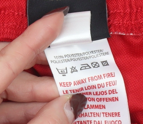 Step up your training game with these Umbro men's red athletic shorts that combine style, comfort, and performance. Made from lightweight and breathable polyester fabric, these shorts are designed for high energy activities such as football, gym workouts, and running. The moisture-wicking material ensures you stay cool and dry even during the most intense sessions, while the airy jersey fabric offers a soft feel against the skin and promotes unrestricted movement. Featuring an elastic waistband with a secure drawstring adjustment, they deliver a customisable fit for optimal comfort and flexibility. The clean and minimal design, highlighted by Umbro’s iconic logo on the leg, provides a classic athletic look that easily pairs with performance tops, jerseys, or casual tees. Perfect as part of your activewear wardrobe, these shorts are versatile enough for training, casual outdoor activities, or simply lounging. Built for durability with reinforced stitching and a sports performance material composition, they are designed to withstand regular use without compromising comfort. Machine washable for easy care and crafted from 100% polyester, they deliver the trusted quality and fit associated with Umbro sportswear. Ideal for summer or spring sessions, they help maintain comfort in warm conditions. Whether you are hitting the gym, practicing football, or heading for a jog, these red Umbro active shorts are a reliable choice for both quality and performance. In excellent pre-owned condition with only light signs of gentle wear, they offer a great balance of value and style — ready to give you standout comfort and freedom of movement every time you train.