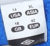 Dive into comfort and team spirit with the Umbro Blue Pullover Sweatshirt, crafted for unisex adults. Designed in a striking blue hue, this sweatshirt showcases distinct embroidered England accents, perfect for any sports enthusiast. Made of 100% polyester fleece, it offers both warmth and breathability, ideal for all-seasons wear. The 1/4 zip closure complements its high neck and raglan sleeves, ensuring a comfortable fit. Whether on the field or off, stay active and stylish with this lightweight, insulated piece. Machine washable for easy care, this regular fit sweatshirt is your go-to for football and other sporty occasions. The perfectly sized pockets add an extra touch of functionality, making it not just a piece of sportswear but a versatile addition to any wardrobe. Gently used with slight wear, it's ready to become a staple in your collection.