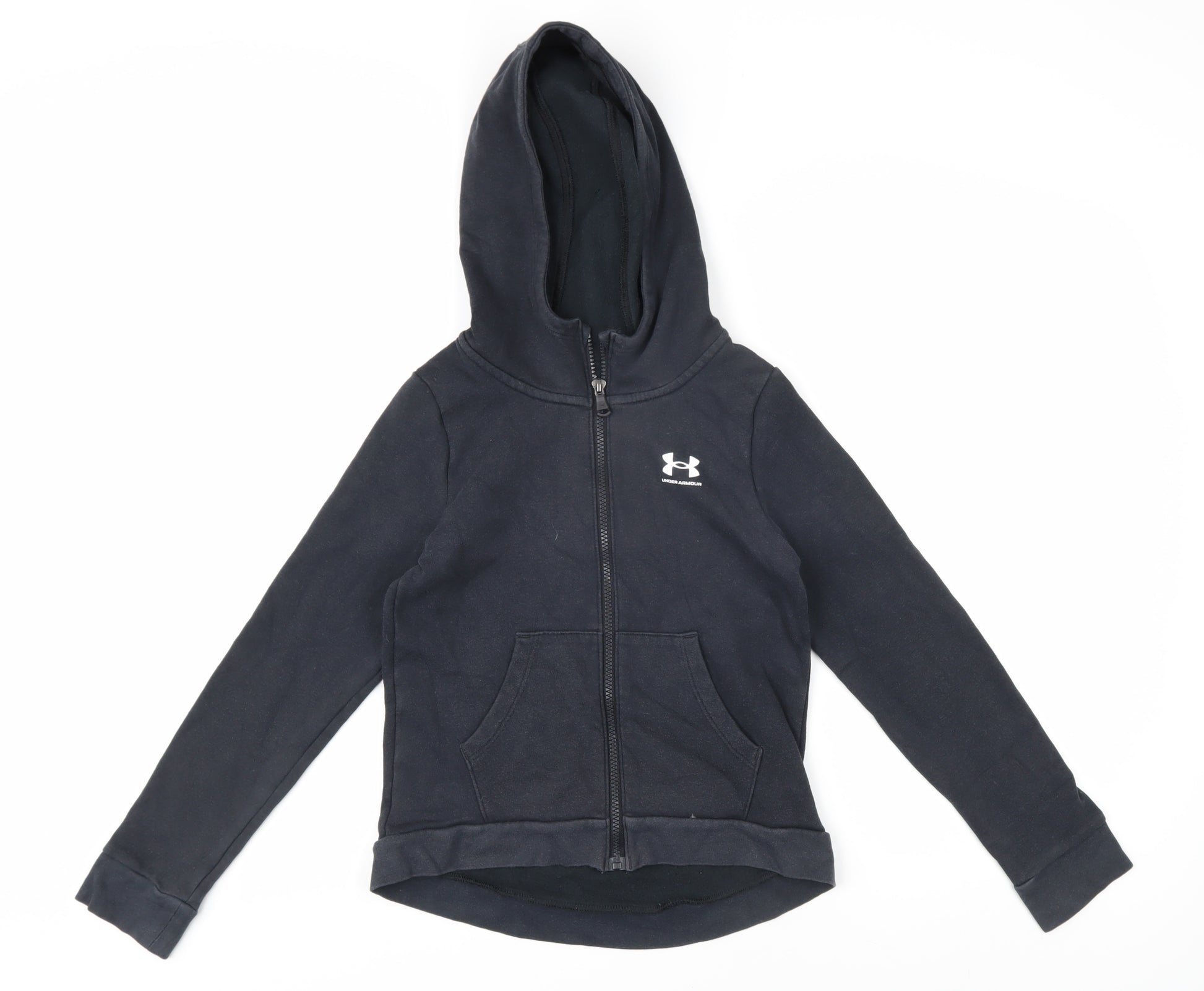 This Under Armour Boys' black full zip hoodie is a versatile and stylish addition to any young one's wardrobe. Crafted from a soft fleece blend of 67% cotton, 20% polyester, and 13% recycled polyester, it combines comfort with durability, making it perfect for everyday wear. The hoodie features a practical full zip front that offers easy wearability and adjustable warmth. It is designed with a relaxed fit, ensuring comfort and ease of movement during active play or casual outings. The classic black colour and Under Armour logo accent add a touch of modern style, making it easy to pair with any outfit. Ideal for all seasons, this hoodie is both machine washable and easy to care for, ensuring it remains a staple in your child's clothing collection. Whether for casual hangouts, school, or sports events, this hoodie combines functionality with style, making it a smart choice for any parent. Invest in this dependable and trendy piece that promises to keep up with your child's active lifestyle.