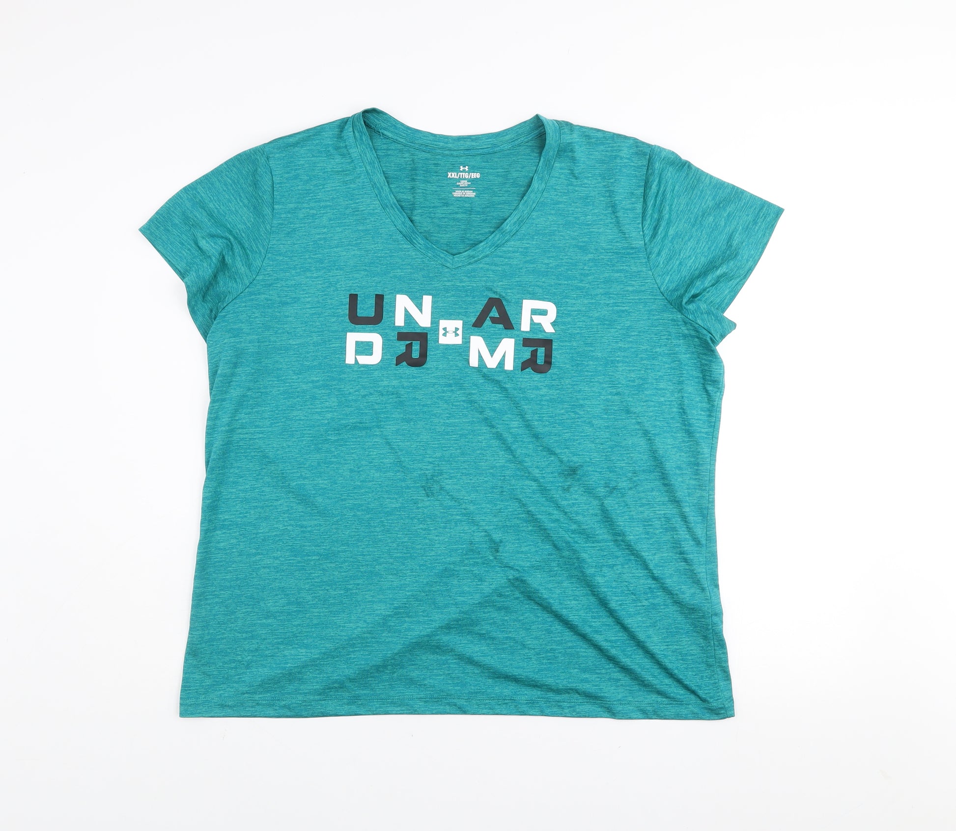 Under Armour Men Blue 2XL V-Neck Moisture-Wicking Active T-Shirt