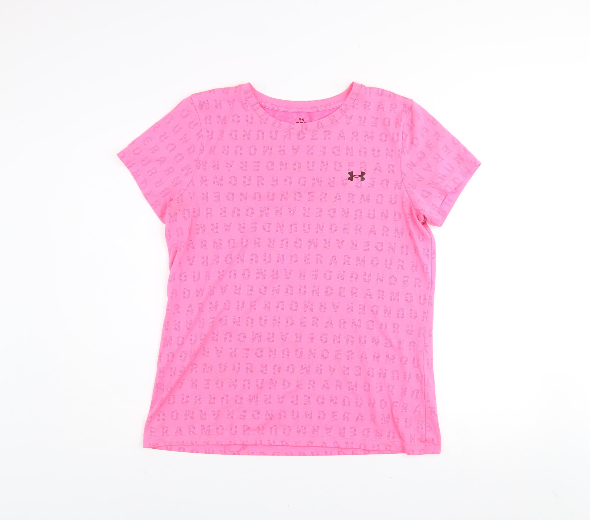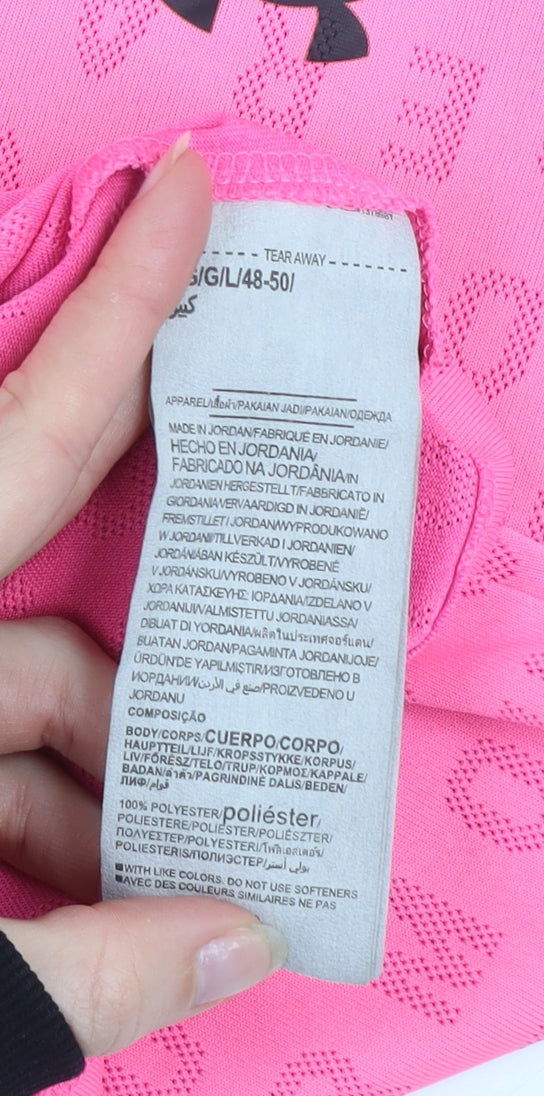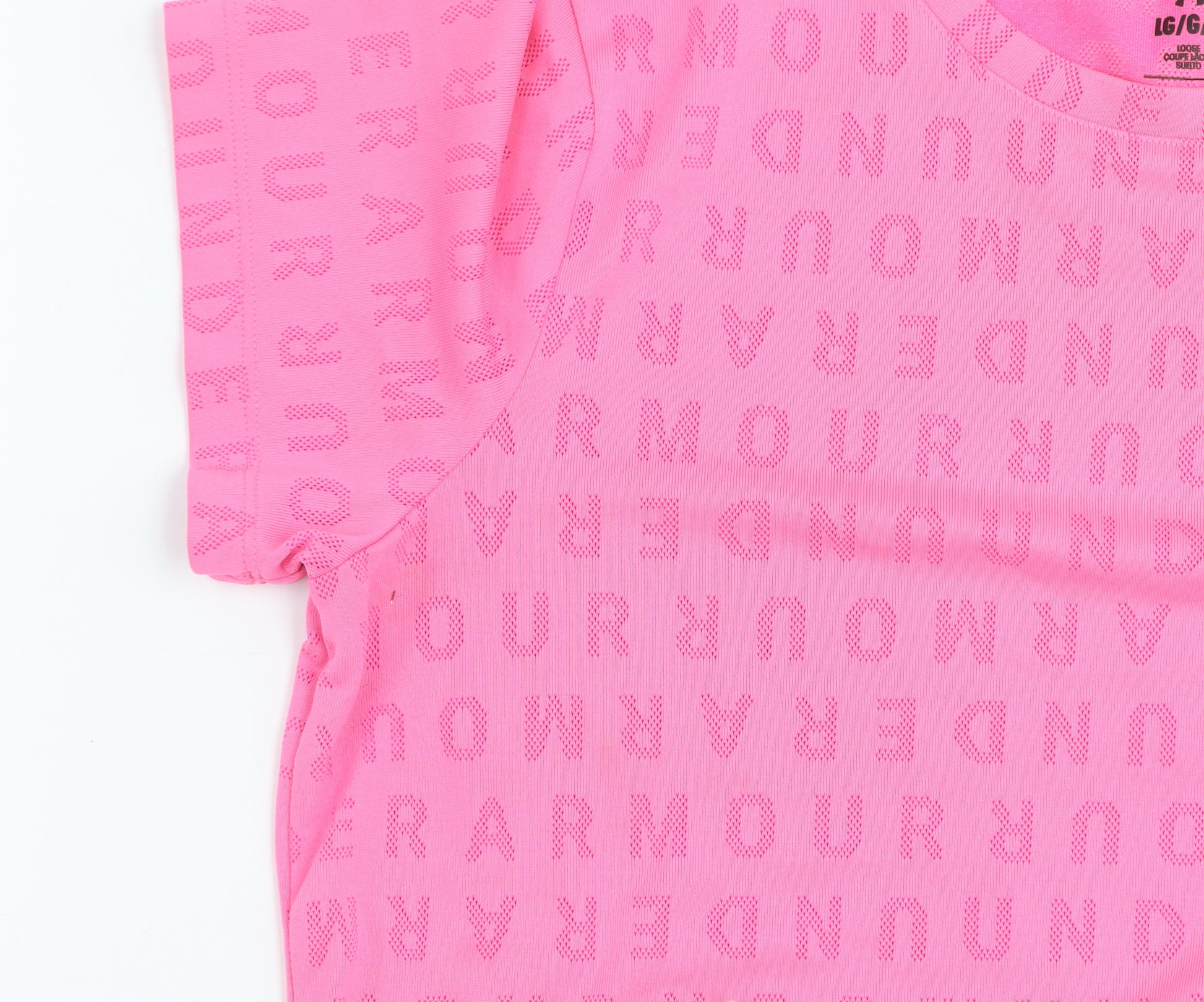 Step up your training wardrobe with this Under Armour men's short sleeve activewear top, designed for both comfort and performance. This vibrant pink T-shirt, in size Large, delivers a bold look with an all-over graphic ‘Under Armour’ print and the iconic logo on the chest. Crafted from 100% polyester, the fabric is both lightweight and breathable, ensuring excellent moisture-wicking and quick-drying performance to keep you cool and comfortable during your toughest workouts. The relaxed fit contributes to easy layering and exceptional freedom of movement, whether you’re at the gym, outdoors, or training on the pitch. Perfect for running, football, cross training, or general fitness sessions, this tee combines Under Armour’s signature performance technology with modern style. The crew neck and fitted sleeves offer a classic look, while the durable polyester construction promises long-lasting quality through multiple washes. Ideal for spring, summer, and early autumn, this versatile activewear top fits effortlessly into your everyday rotation. Machine washable for easy care, this garment provides all the qualities that make Under Armour a premium sportswear choice. In excellent pre-owned condition with no visible faults or damages, it offers outstanding value for athletic wear enthusiasts. Whether you’re hitting the gym or heading on a run, this Under Armour top is set to support your training while adding a touch of colour and energy to your sportswear collection.